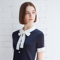 리본 네이비 하프 니트