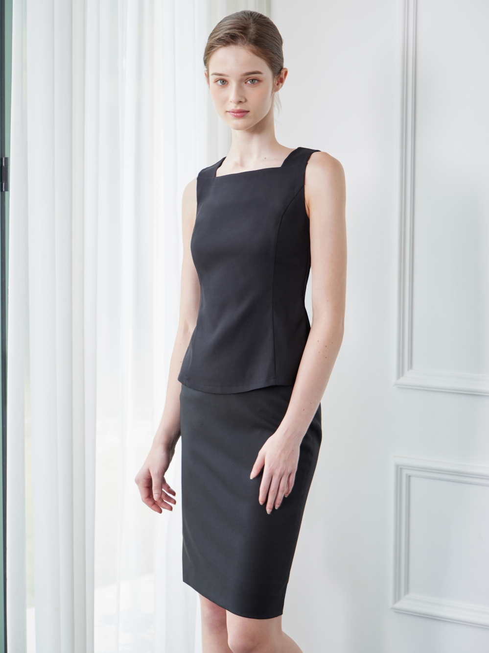 - 모델은 플로 쿨울 블랙 스커트와 함께 착용하였으며, 그 외 다양한 상의의 이너로 착용할 수 있습니다.