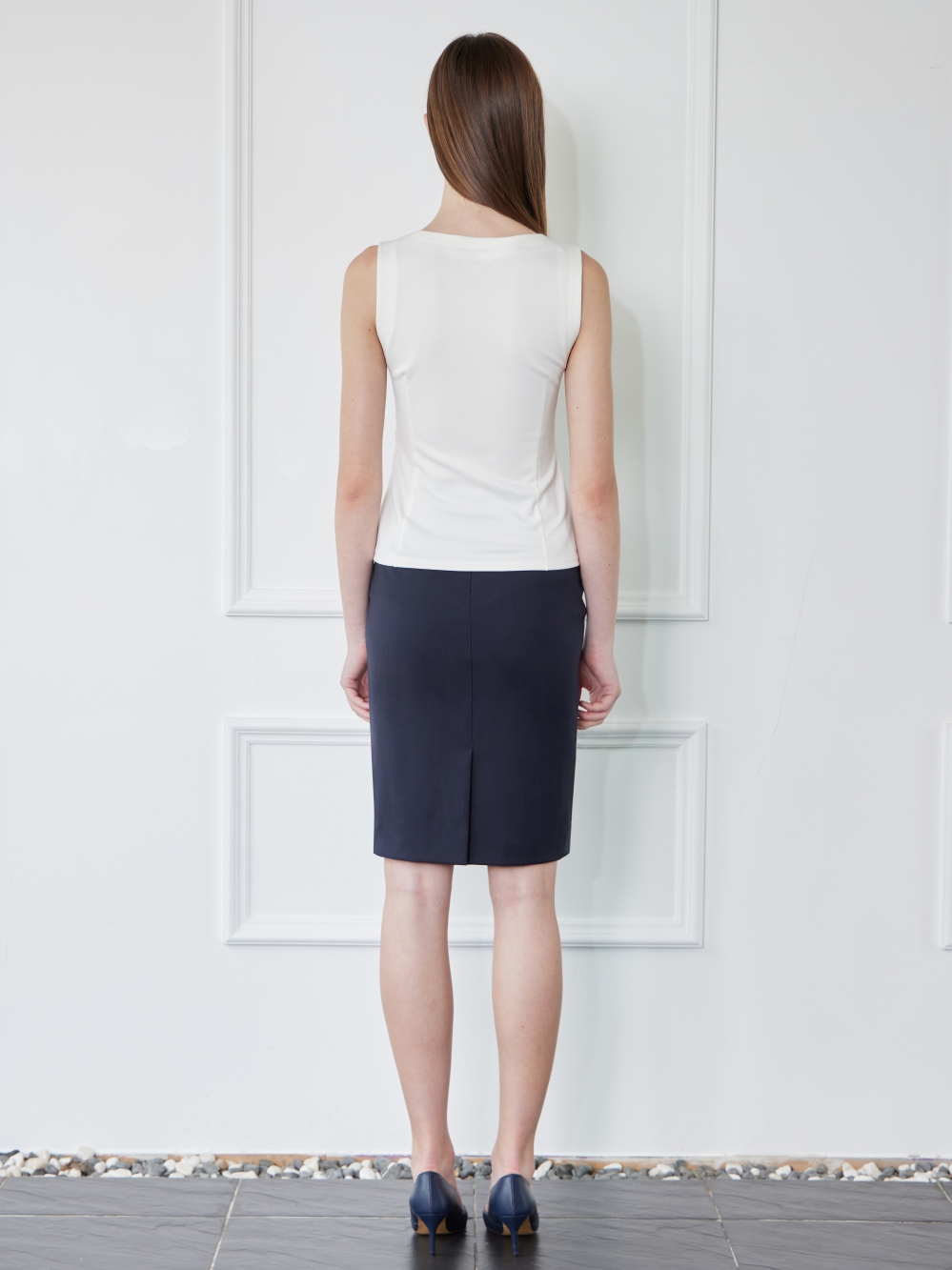 - 모델은 플로 쿨울 블랙 스커트와 함께 착용하였으며, 그 외 다양한 상의의 이너로 착용할 수 있습니다.