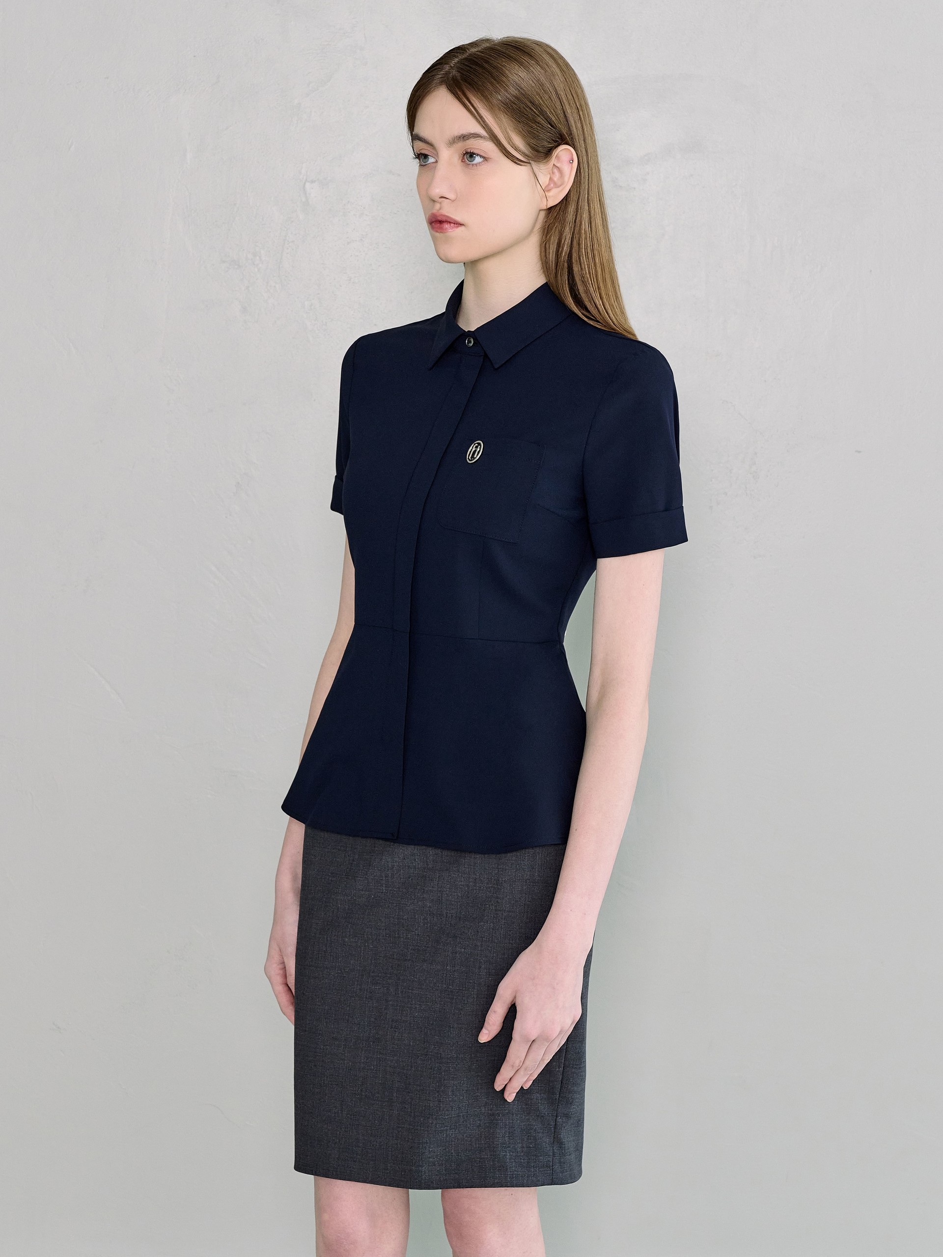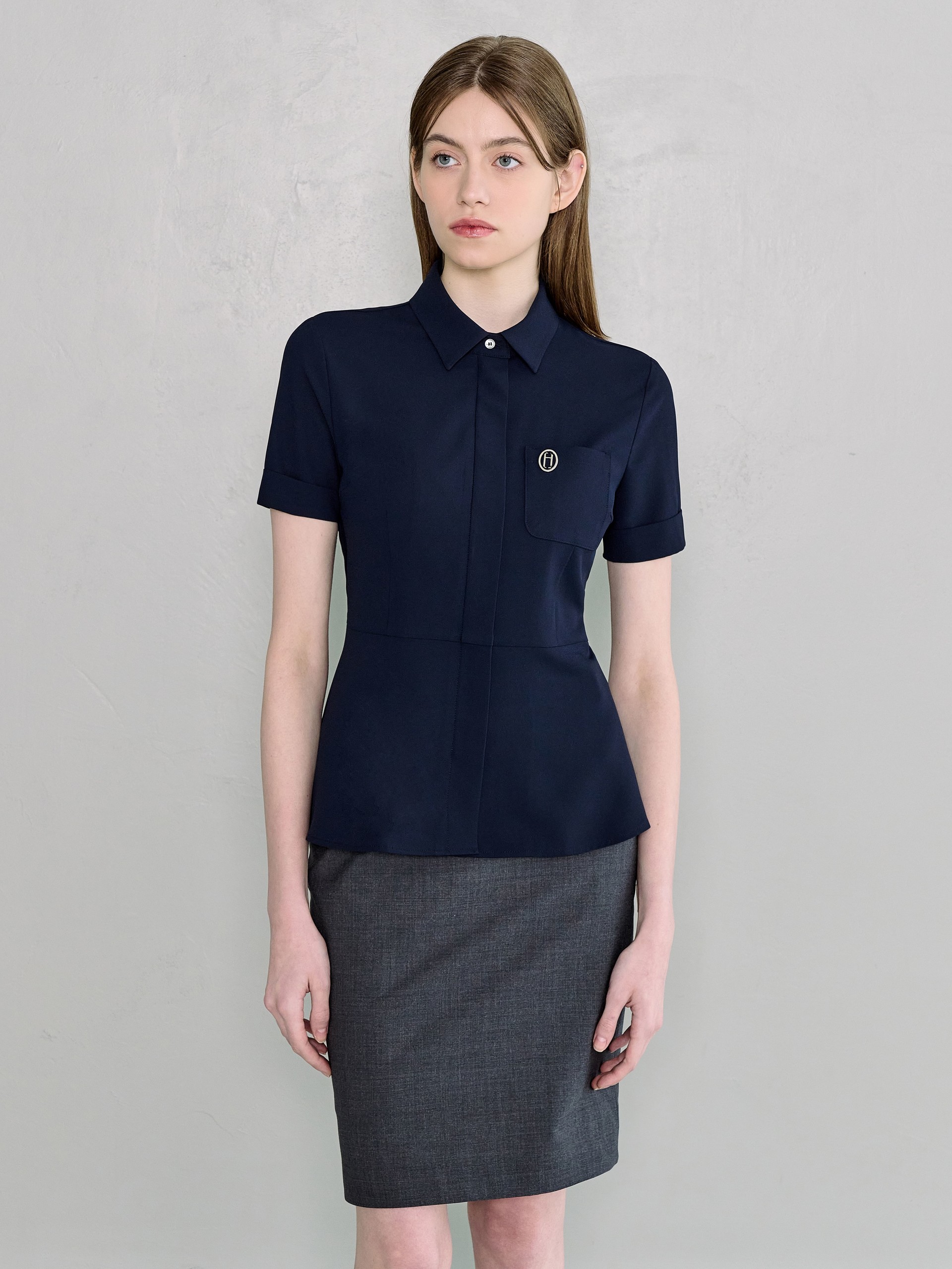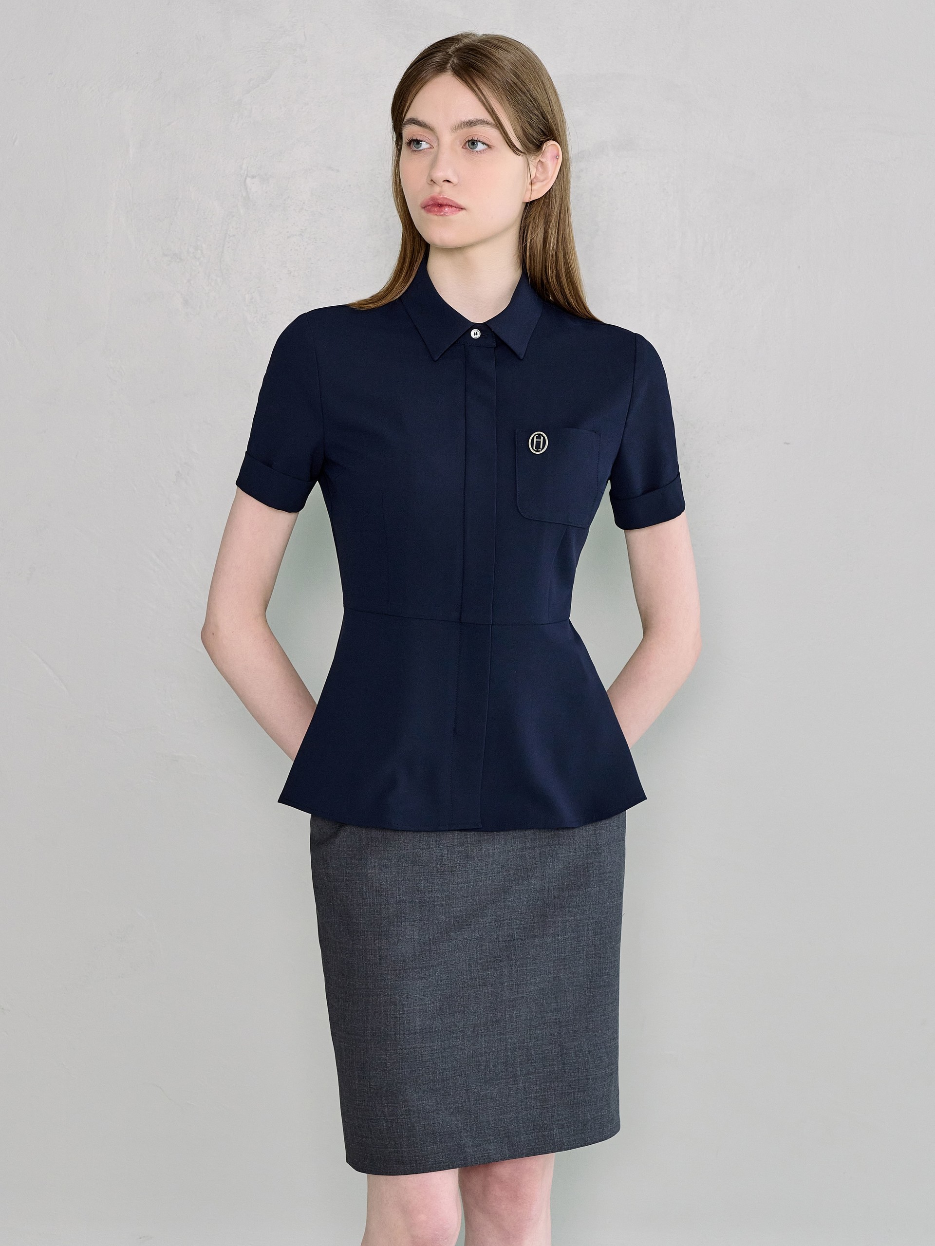 샤모니 네이비 하프 블라우스