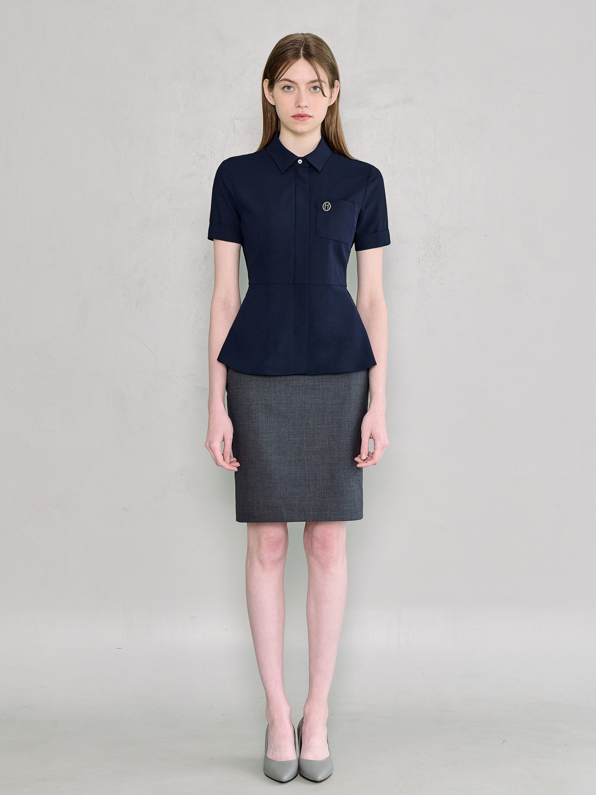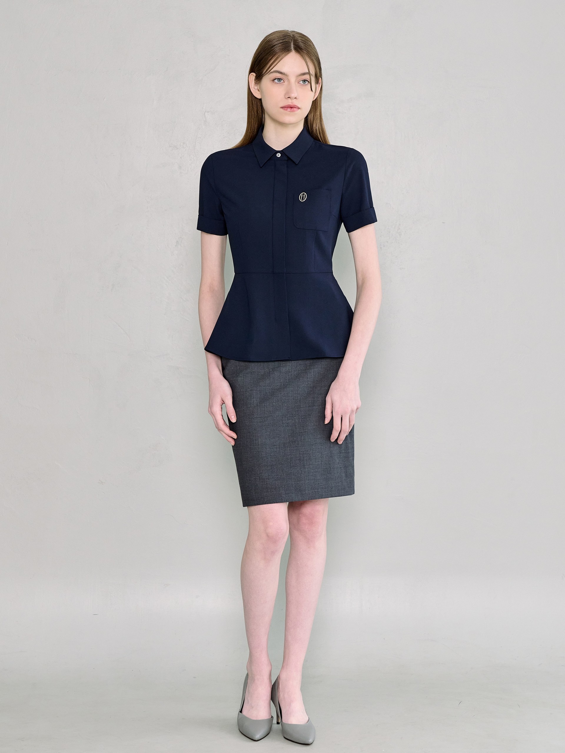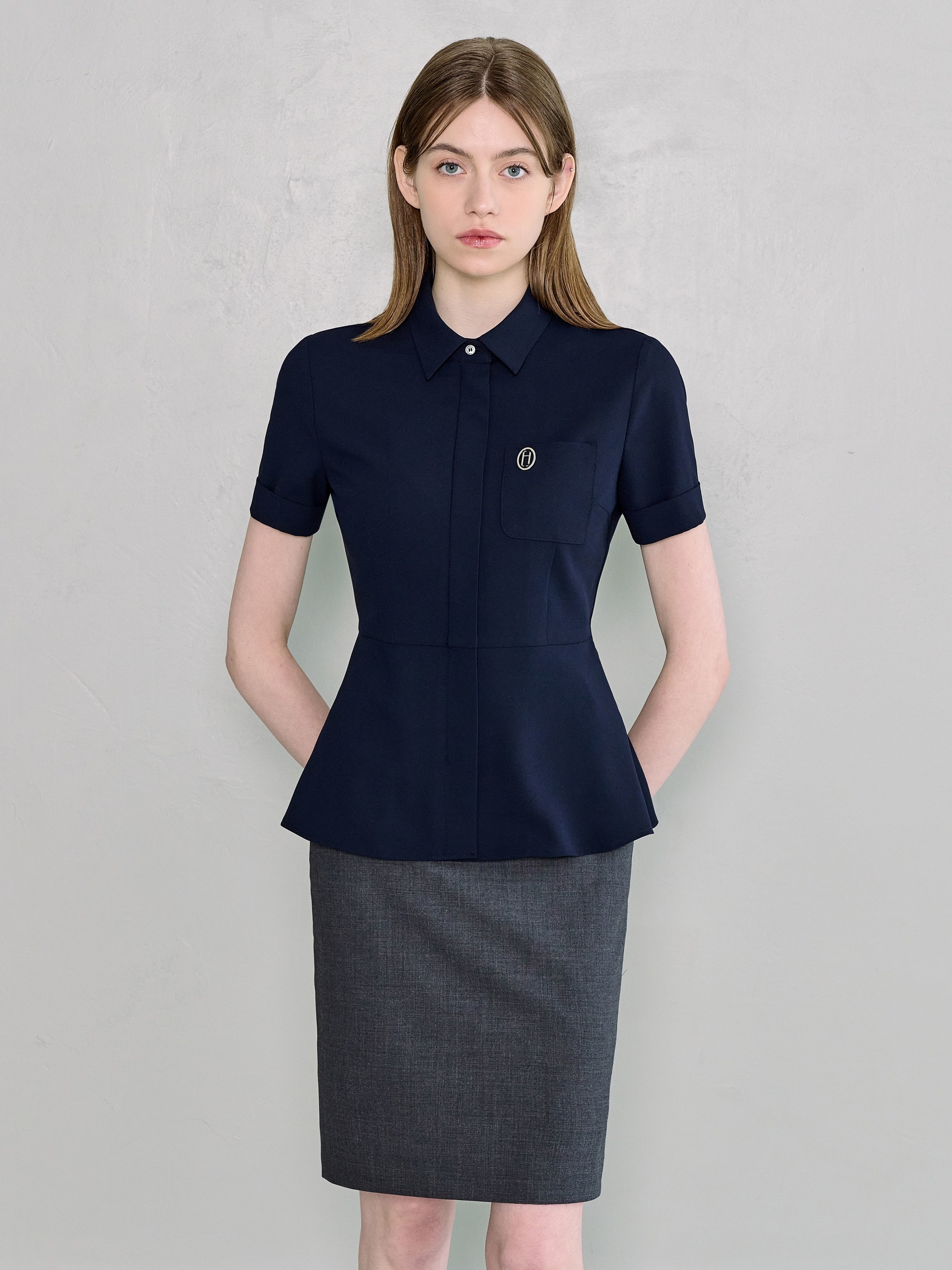 샤모니 네이비 하프 블라우스