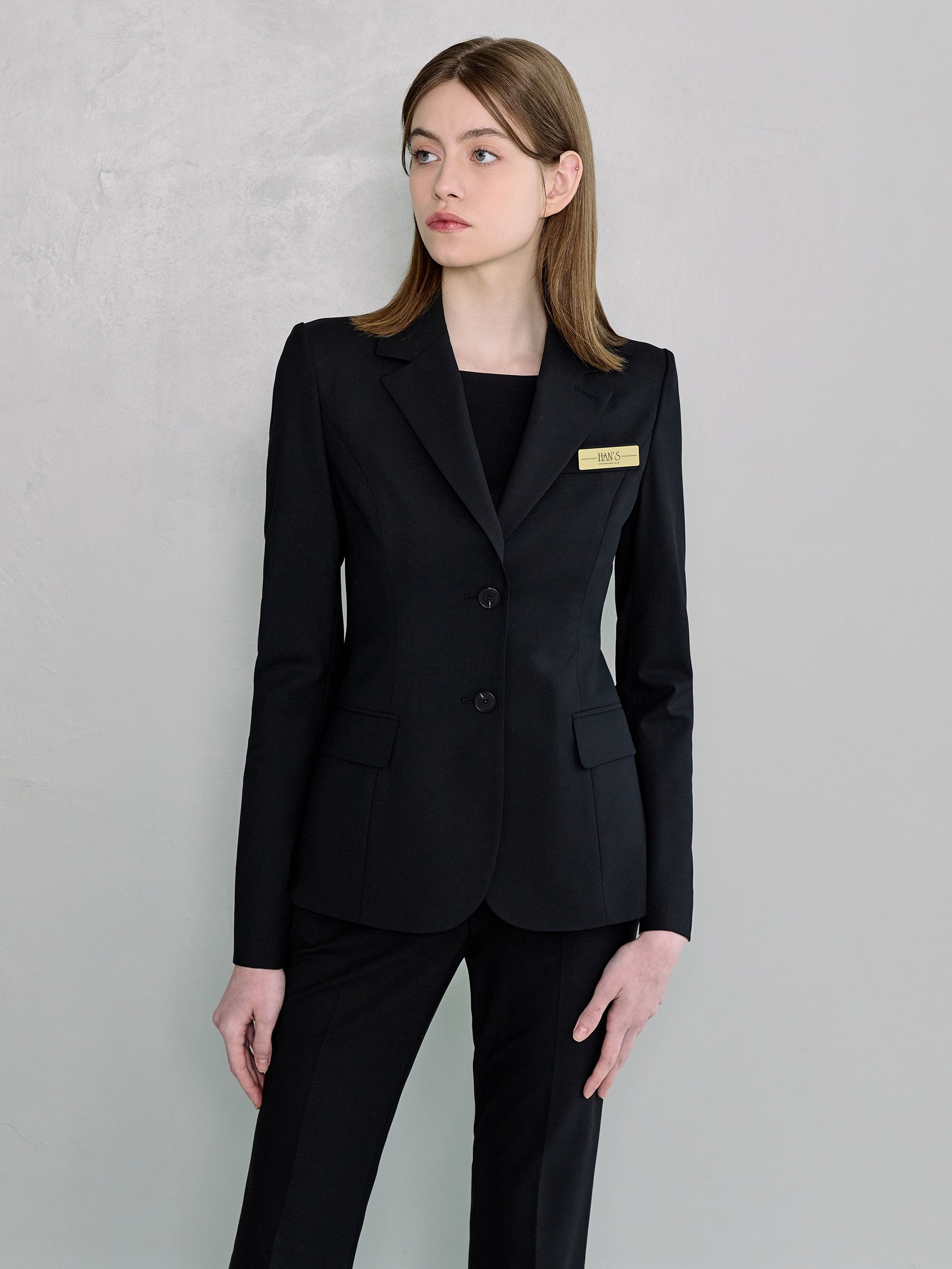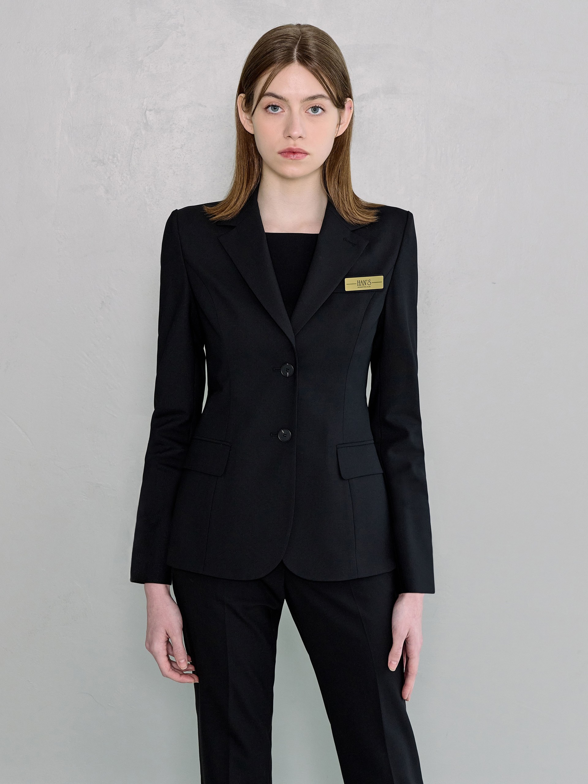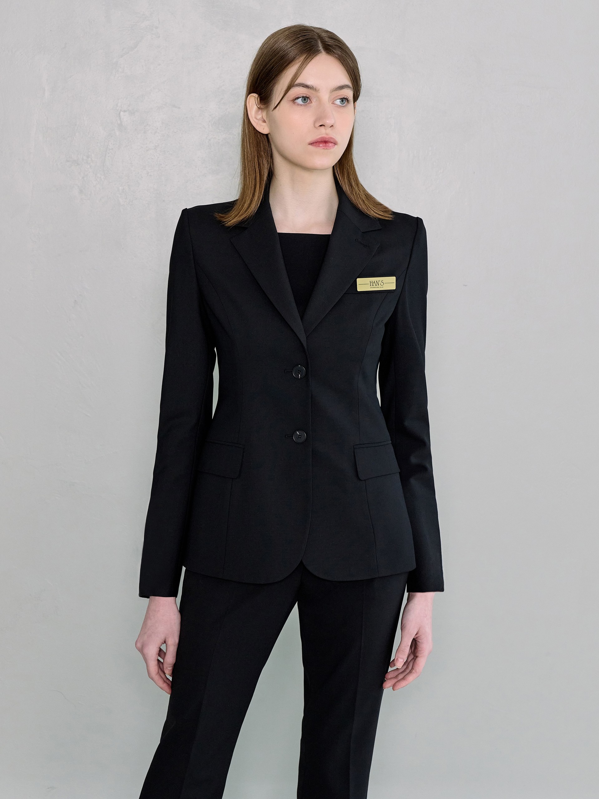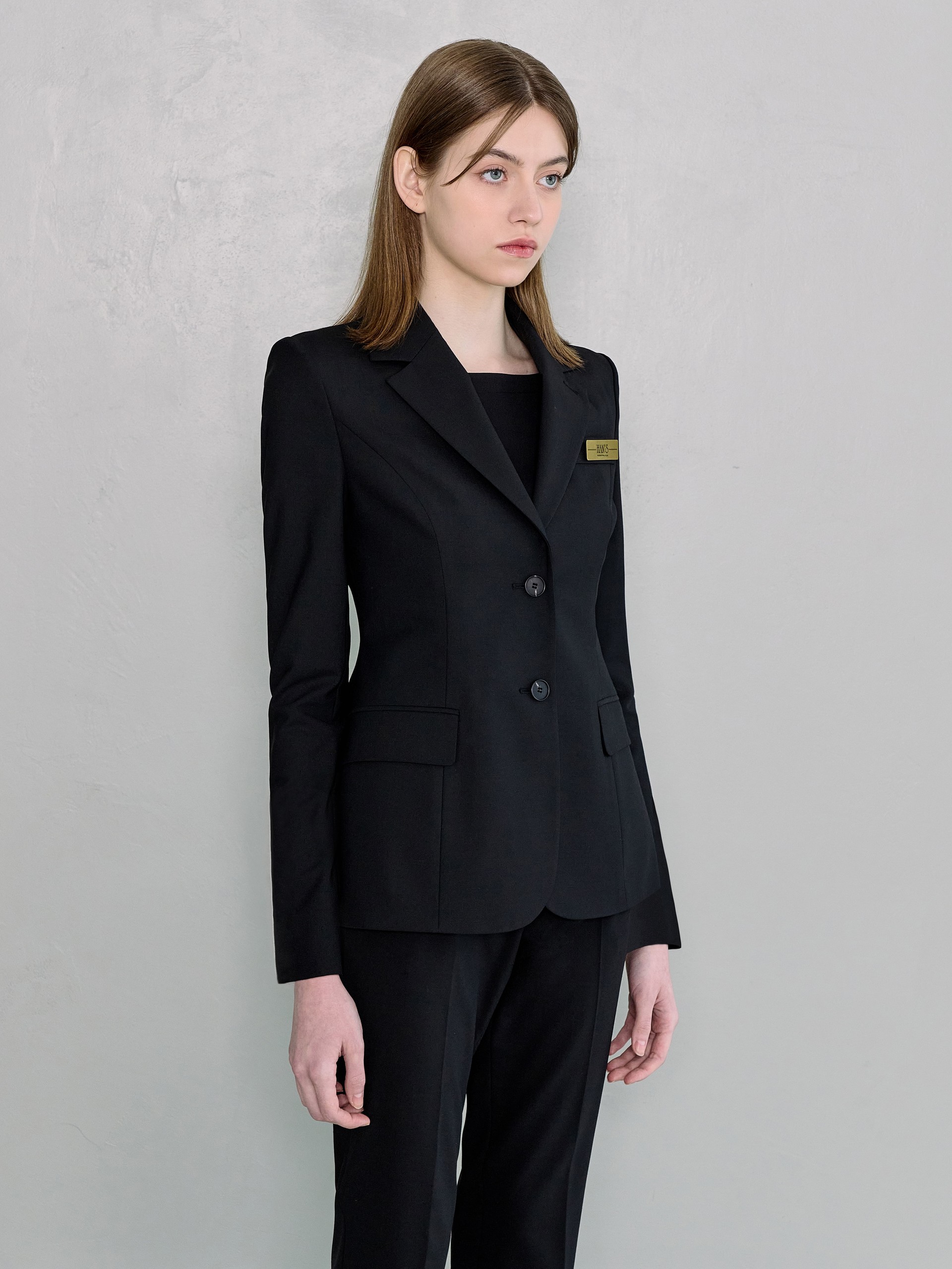 - 베이직한 디자인의 싱글 투버튼 자켓으로 일상에서도 착용 가능한 제품입니다.