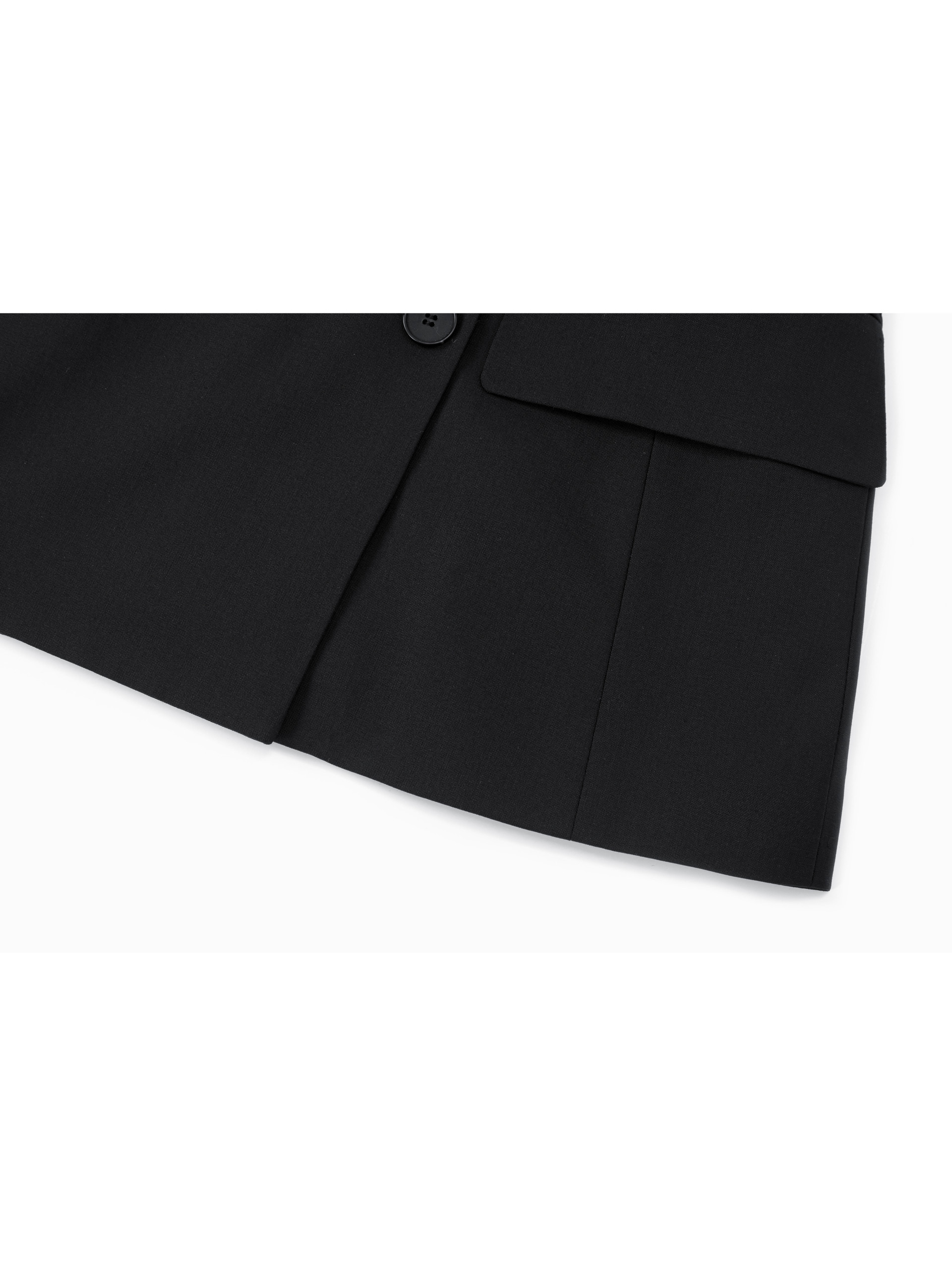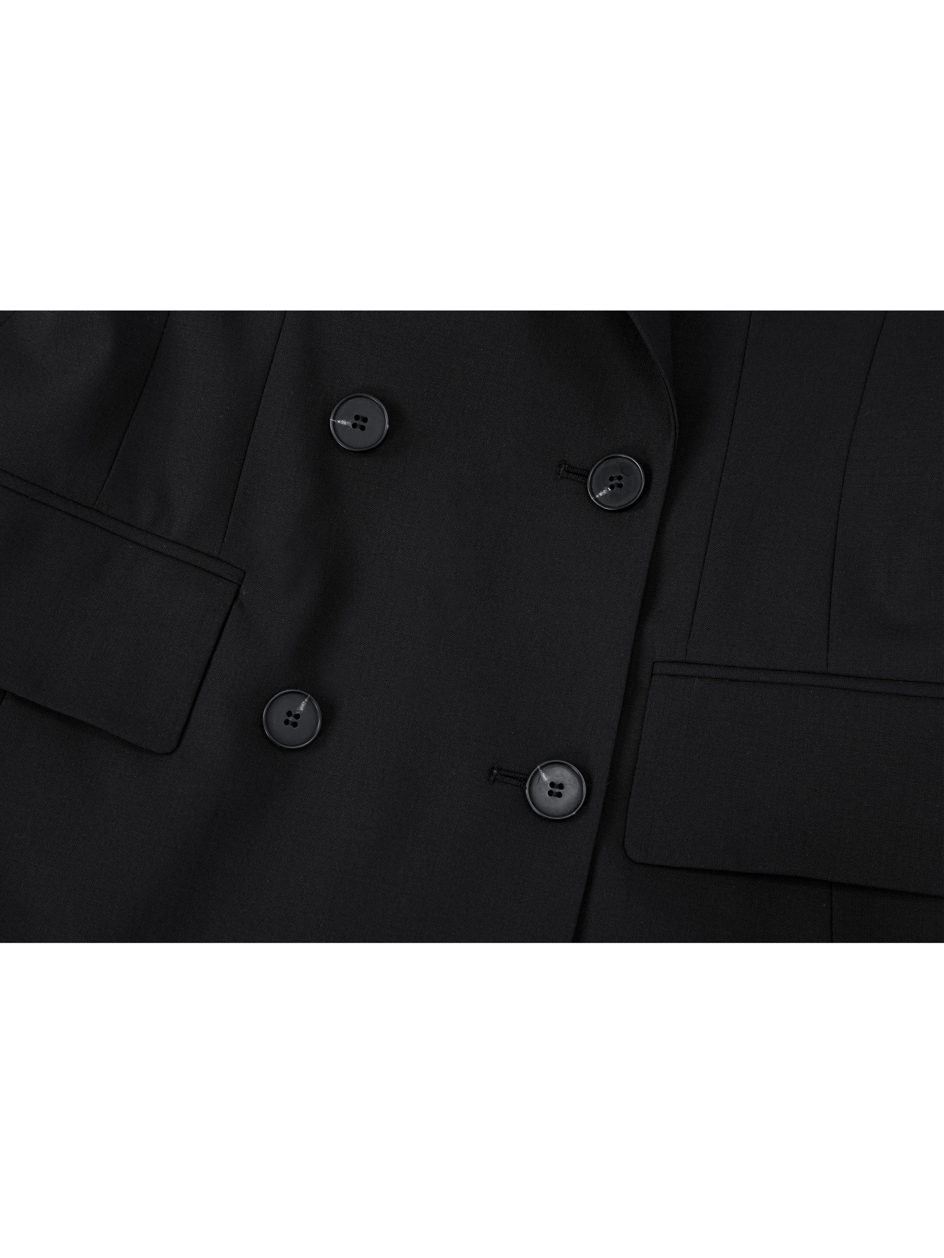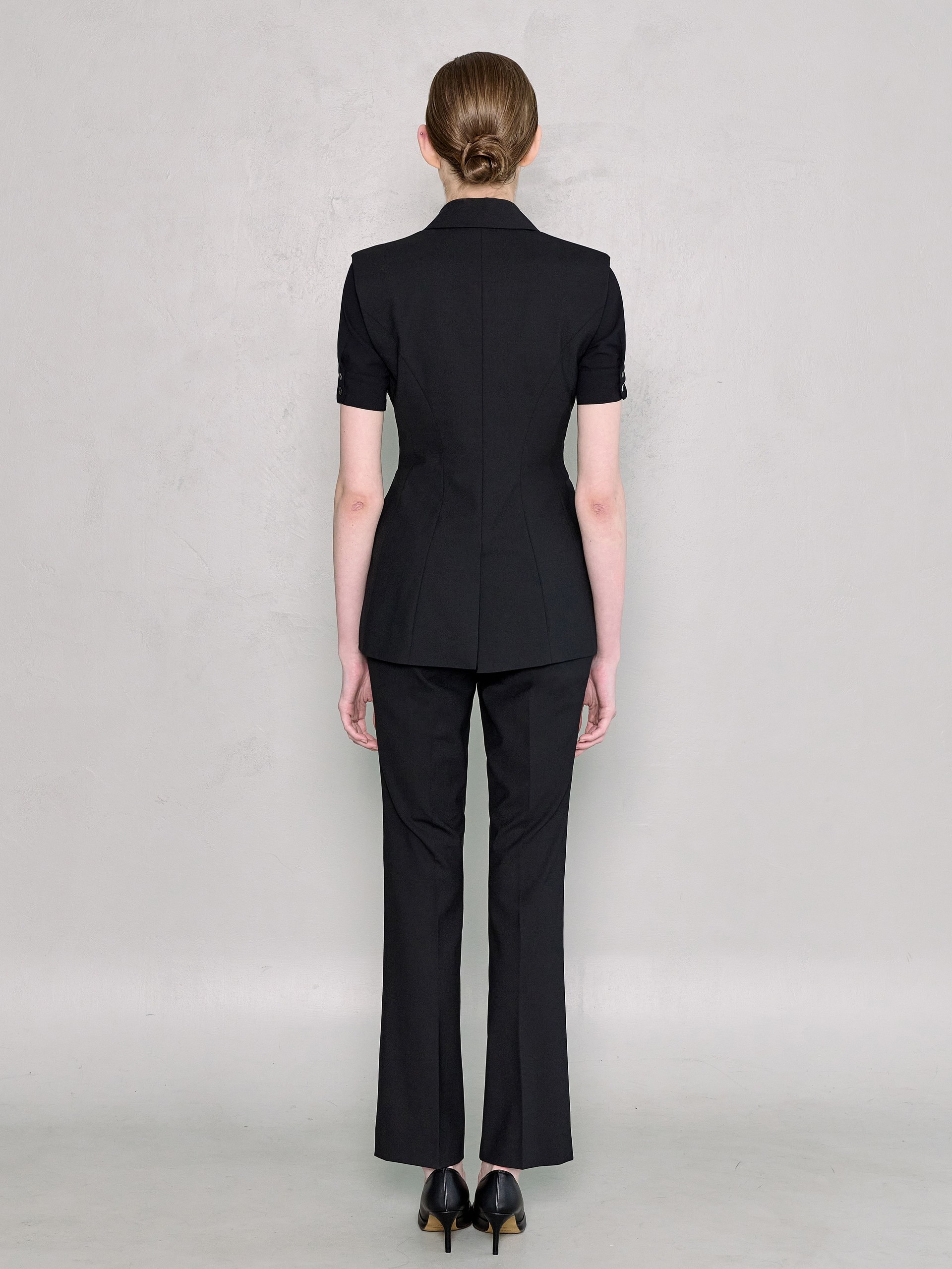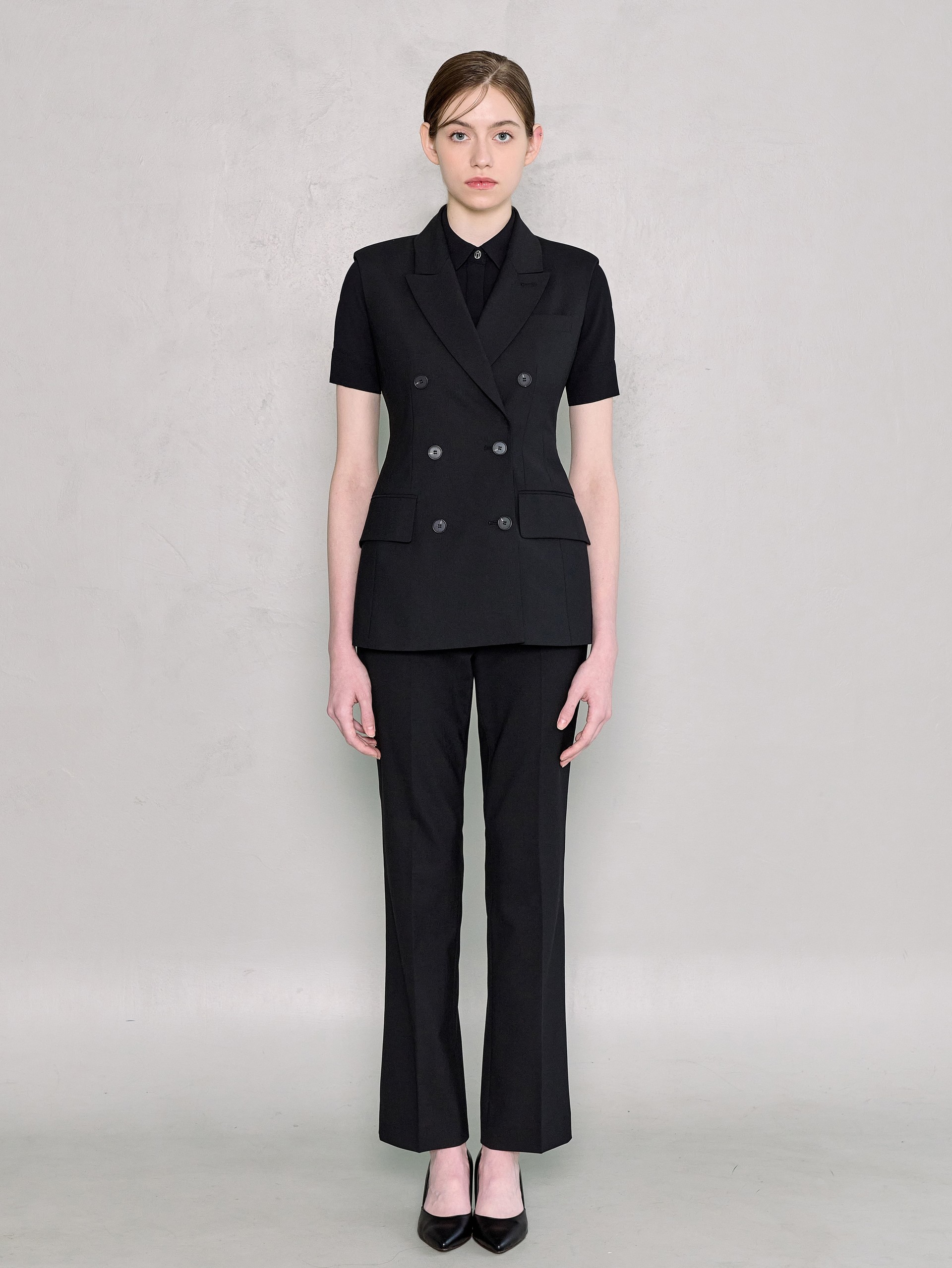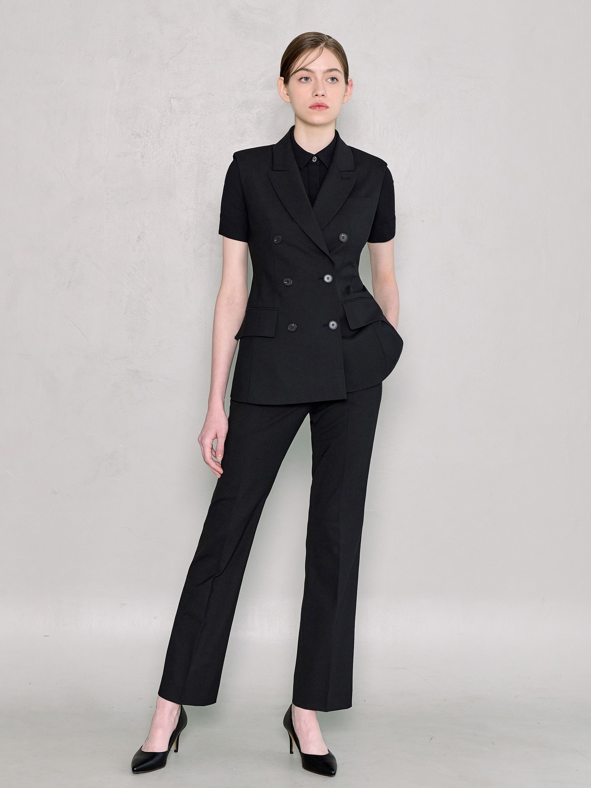 - 더블 여밈의 피크드 카라로 가볍게 착용이 가능한 베스트입니다.