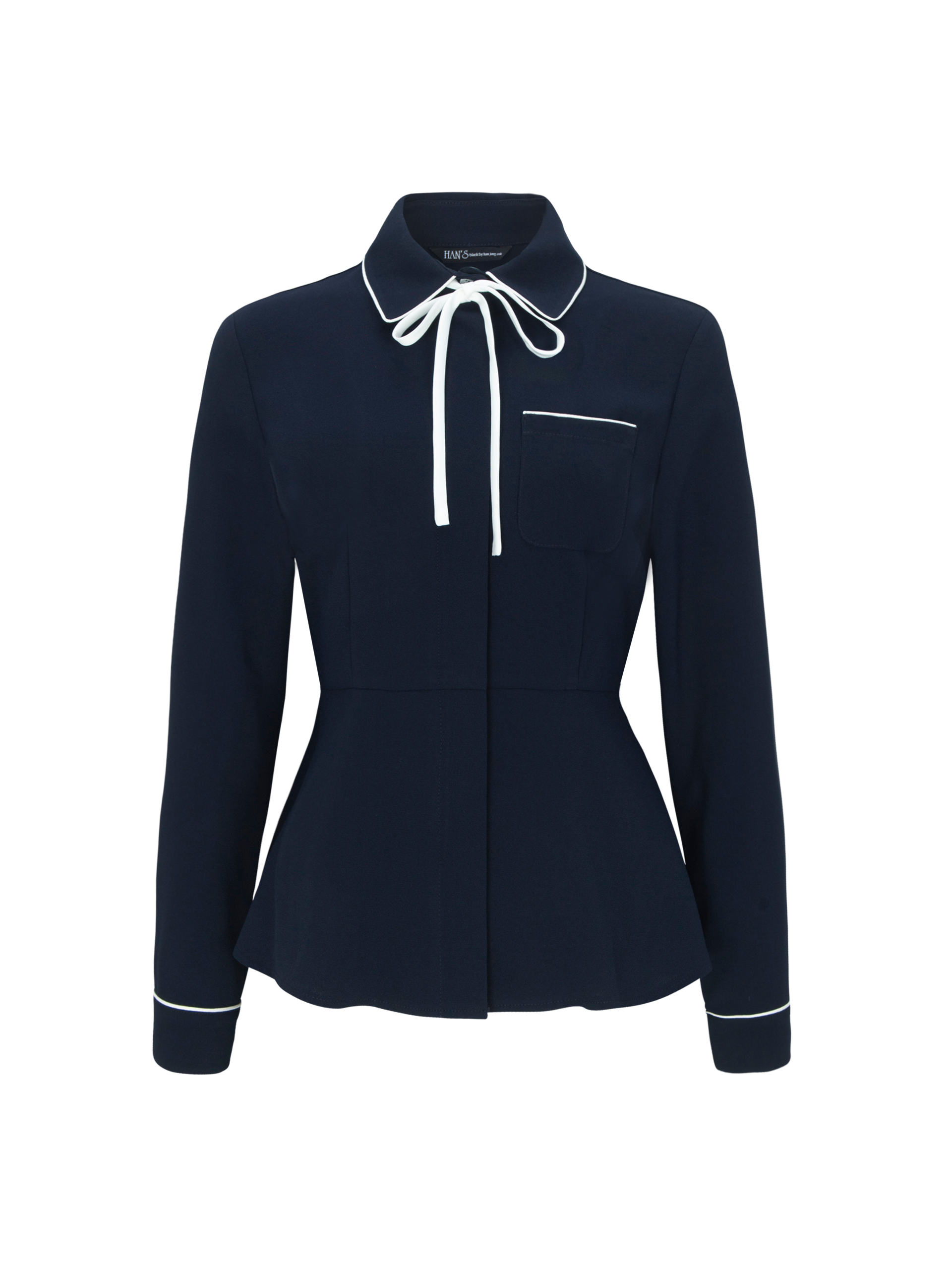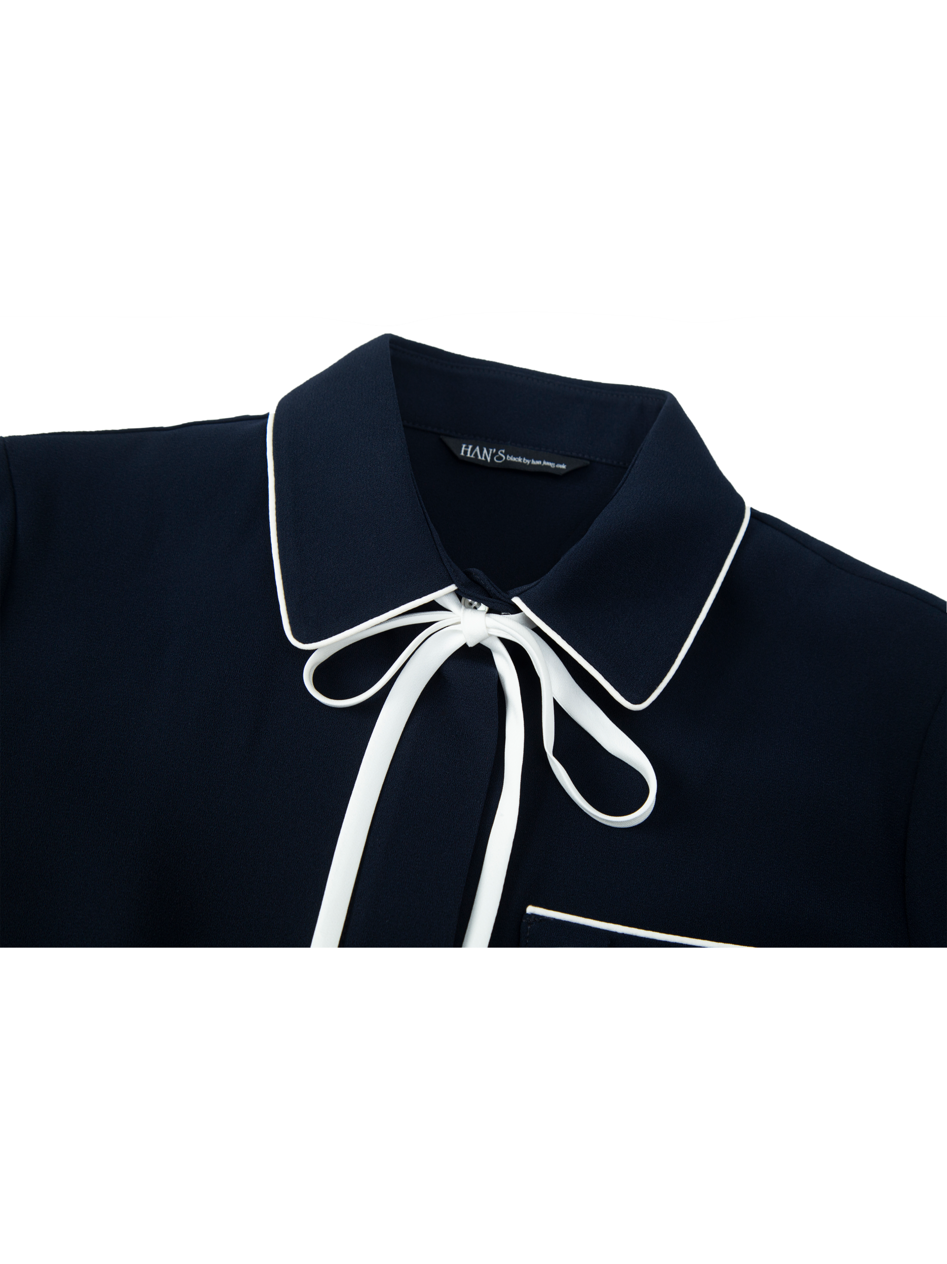 엘 리본 네이비 블라우스