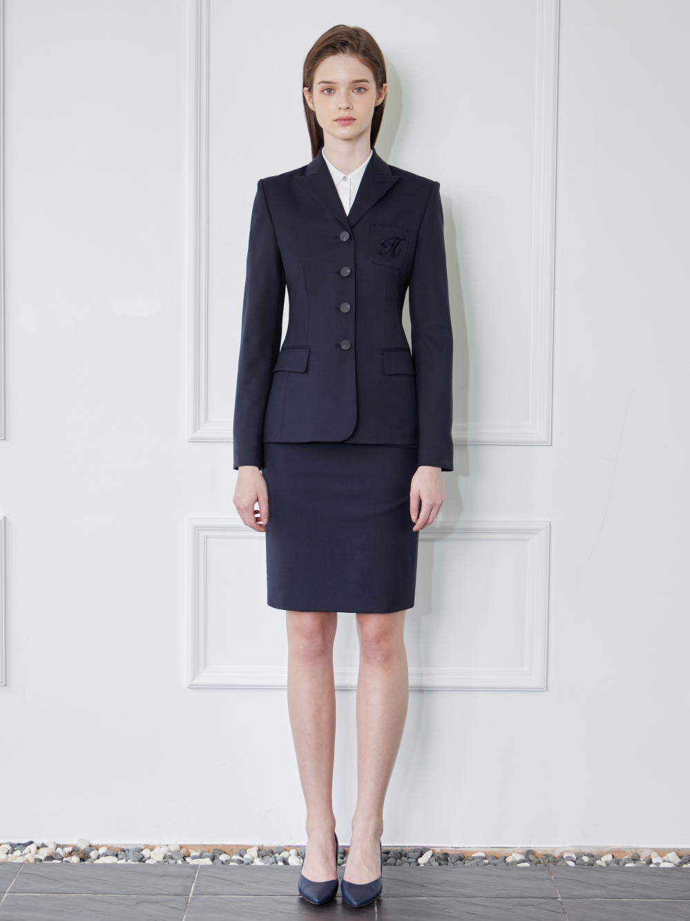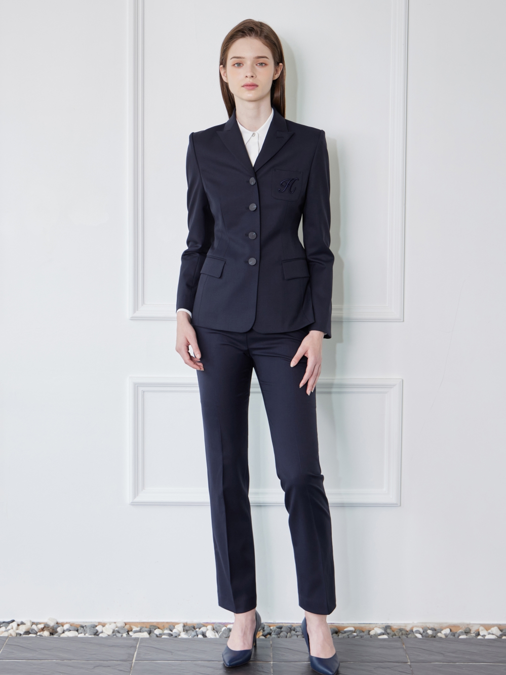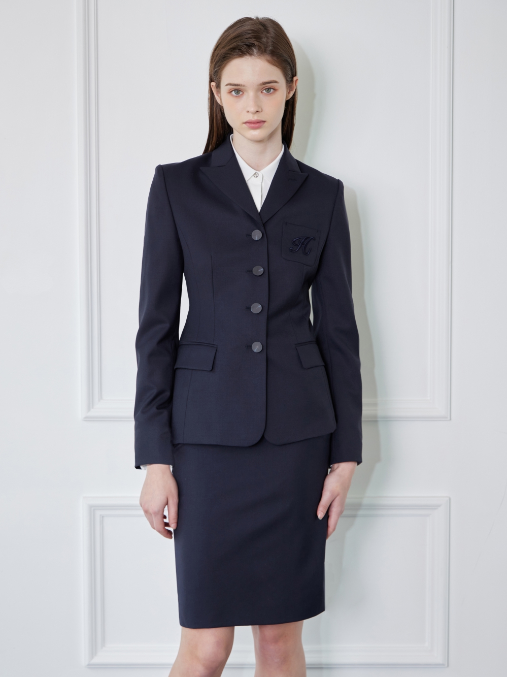 - 왼쪽 가슴의 주머니에 H자수가 있는 세련된 자켓입니다.