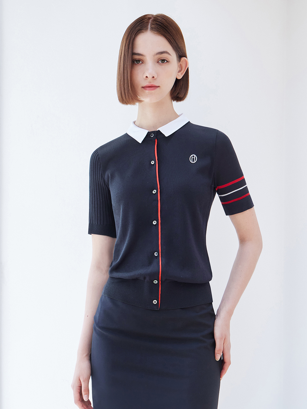 - 네이비에 레드와 화이트 배색으로 포인트를 준 디자인입니다.