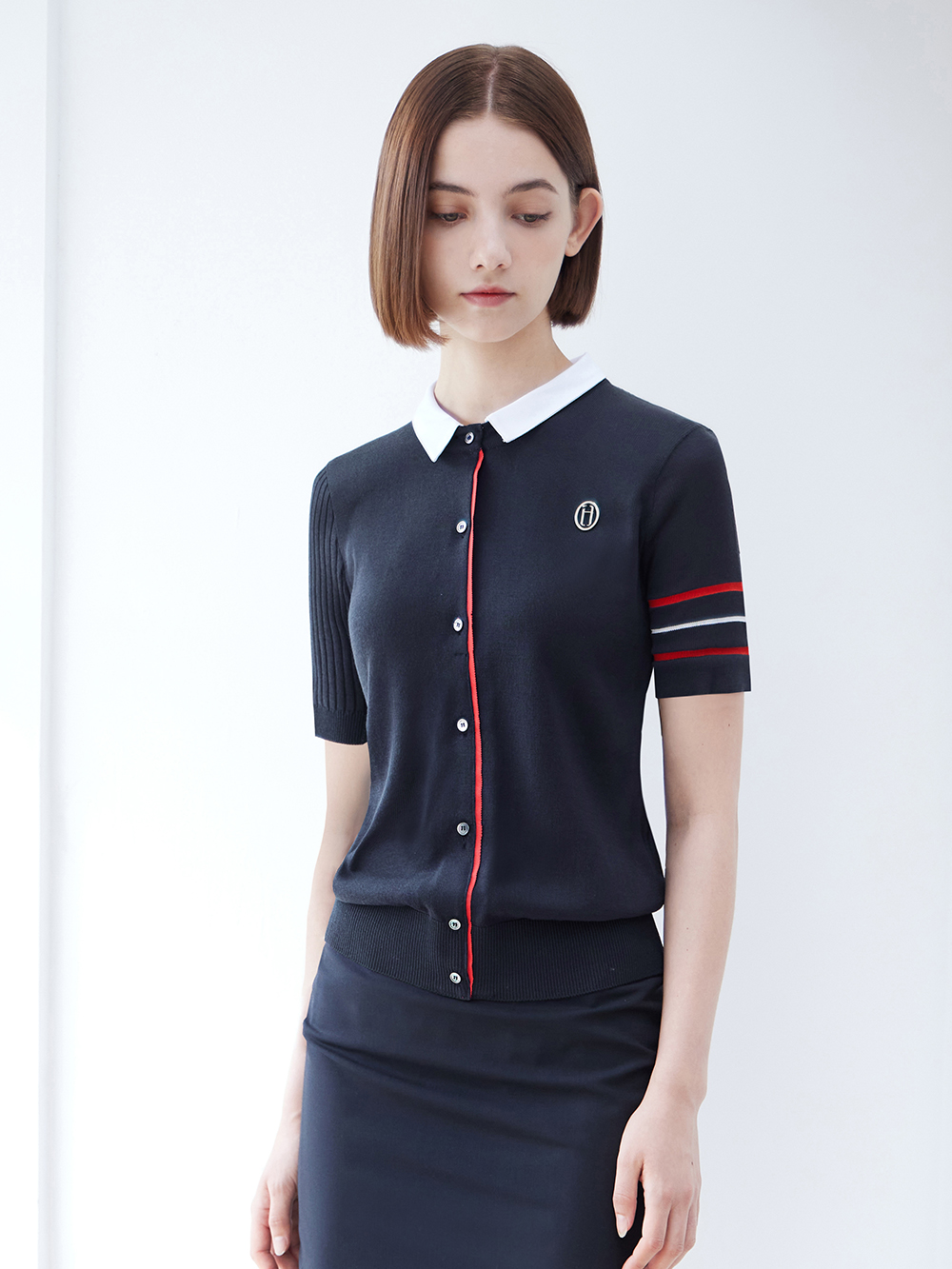 어반 네이비 하프 니트