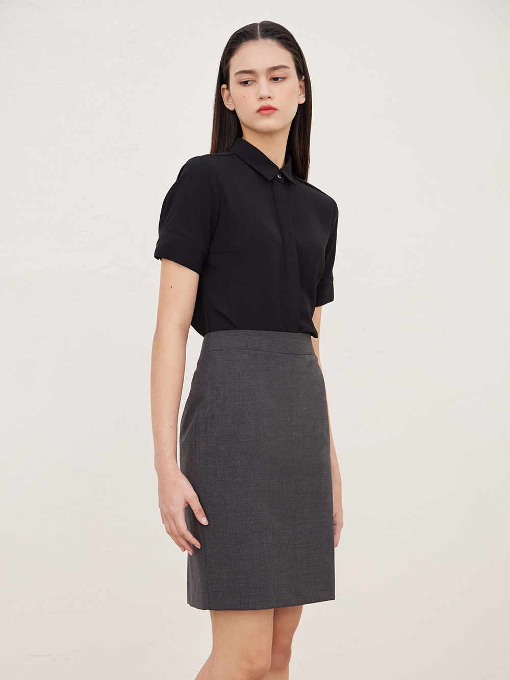 - 허리 라인이 들어간 슬림핏 블라우스입니다.