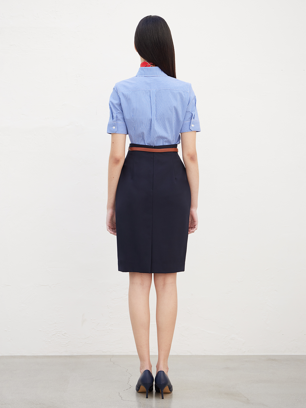 - 하이웨스트 스커트로 다리가 더욱 길어보입니다.