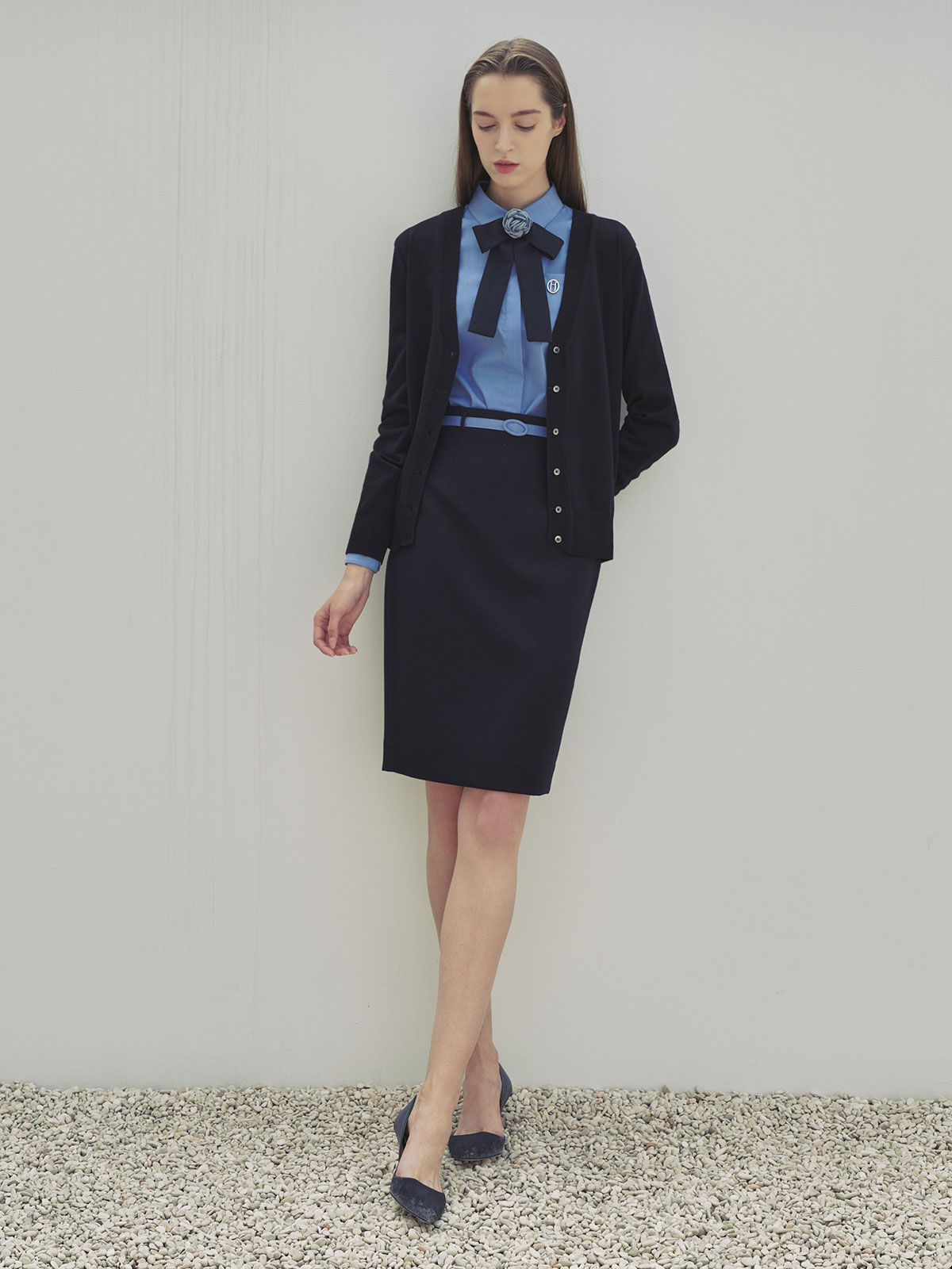 - 카시아 블루 벨트 스커트, 카시아 네이비 스커트, 루시 카시아 네이비 하이스커트, 카시아 팬츠, 다비 라운드 가디건 등과 착용할 수 있습니다.