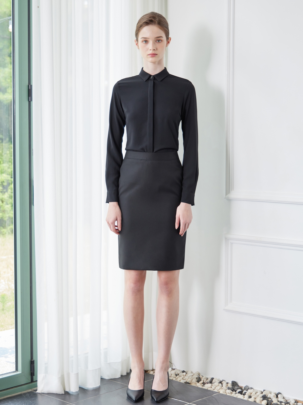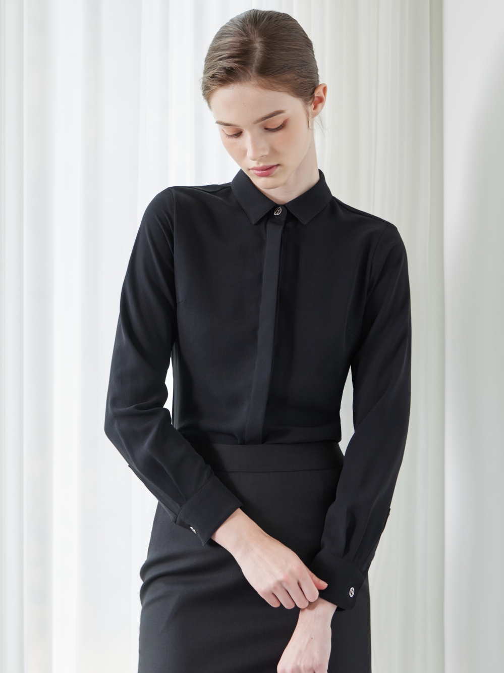 로라 블랙 블라우스