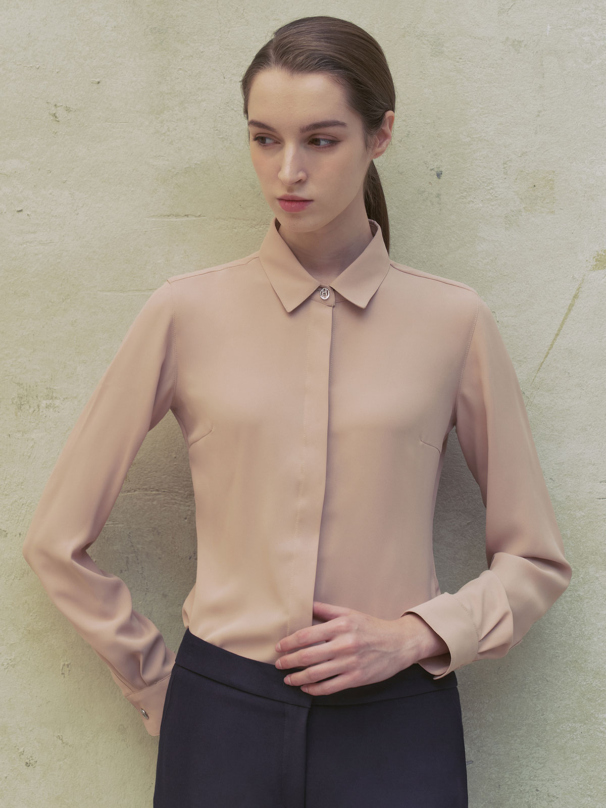 - 허리 라인이 들어간 슬림핏 블라우스입니다.