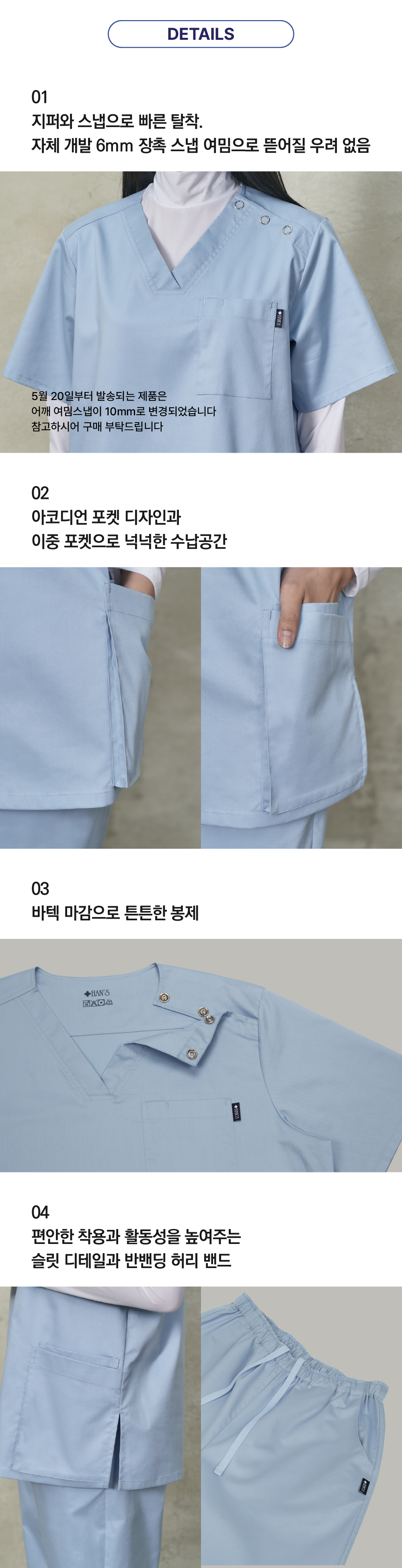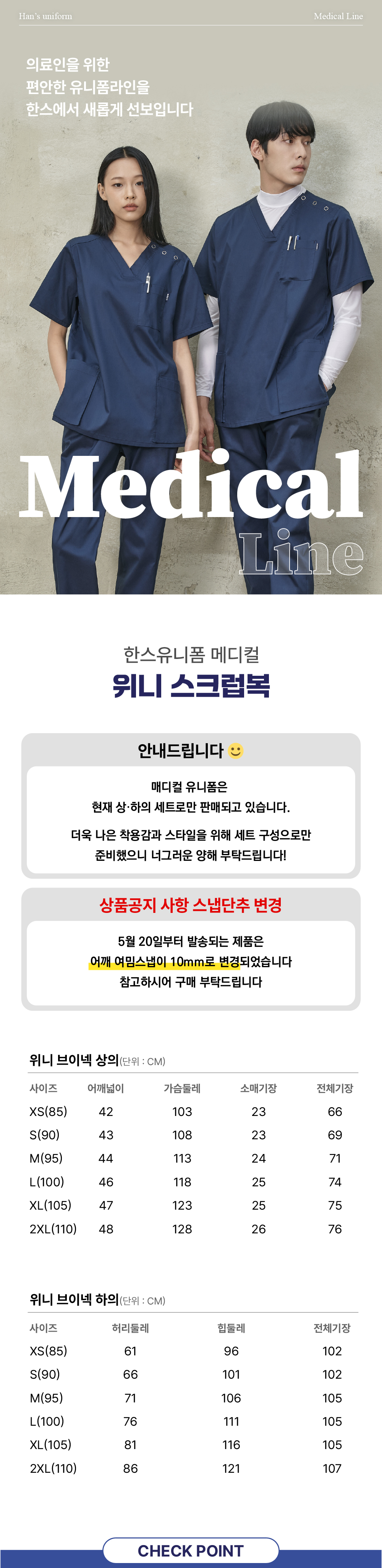 - 교환 서비스는 상품을 받으신 날부터 7일이내까지[한스유니폼]으로 도착하여야 하며, 도착지연건에 대해서는 교환이 불가능합니다.