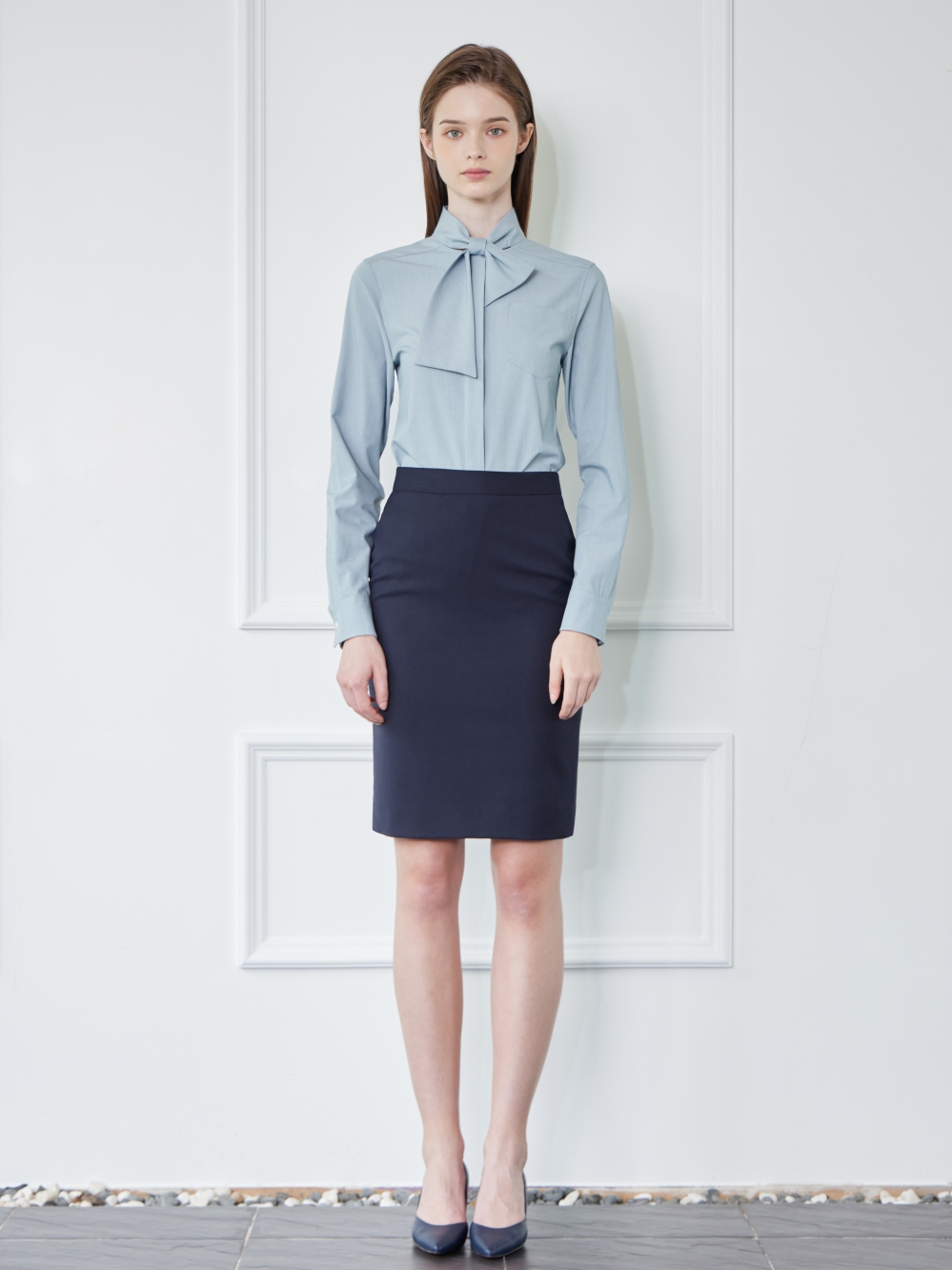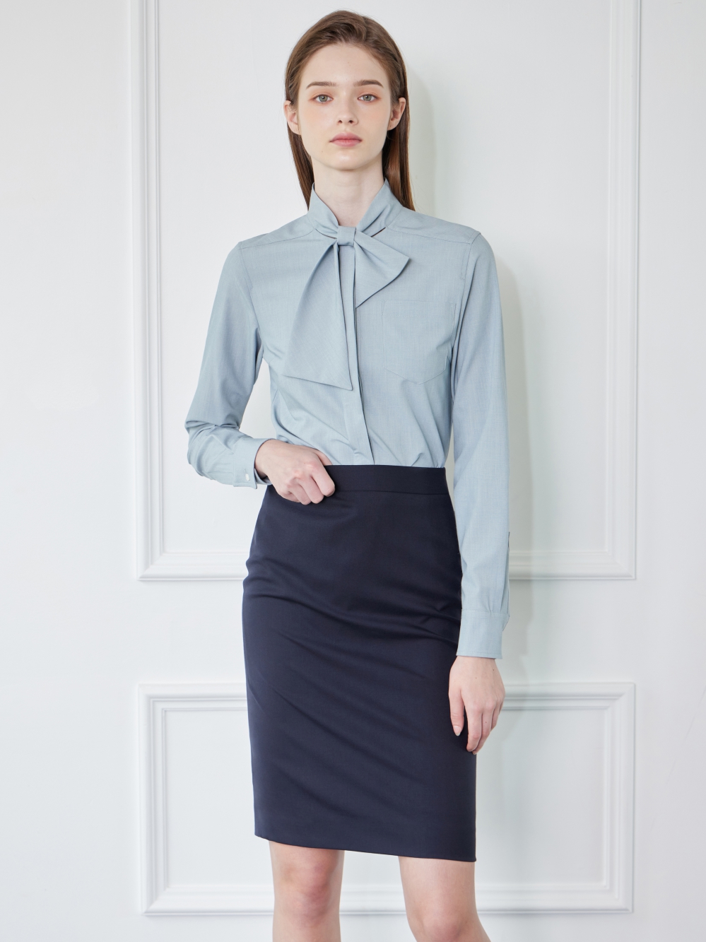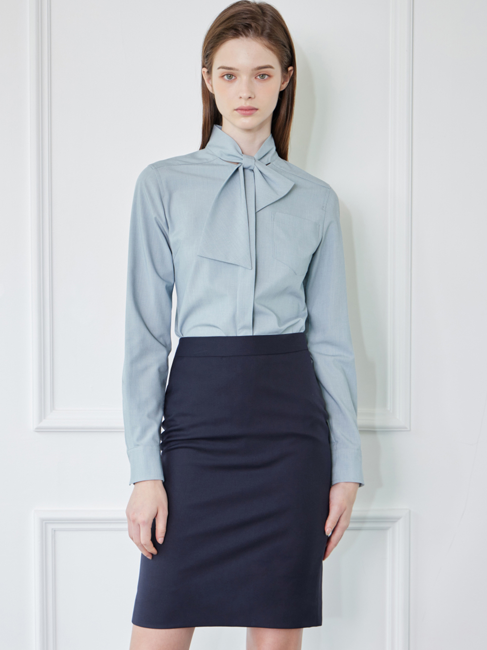 리나 스카이블루 인 블라우스