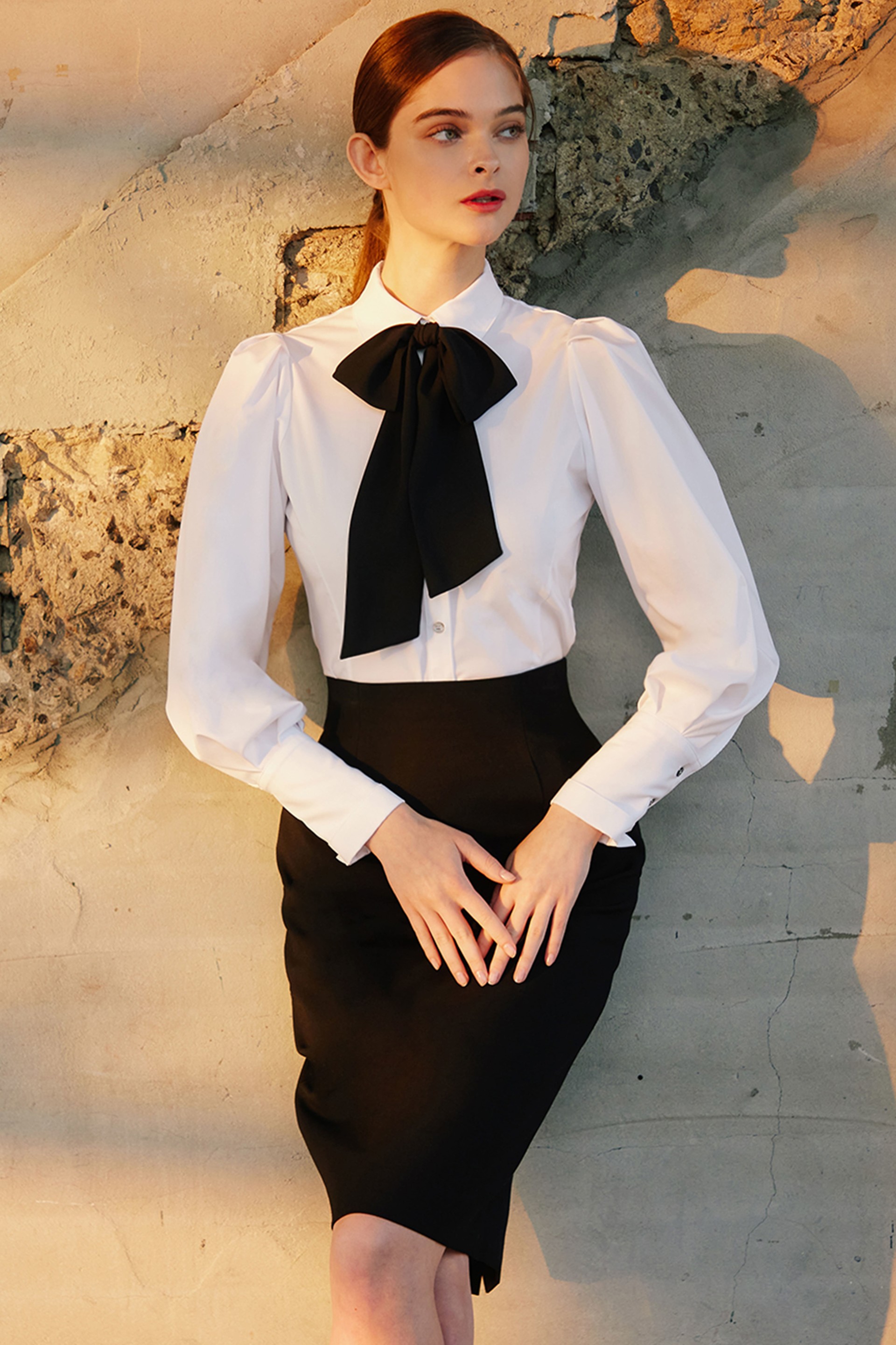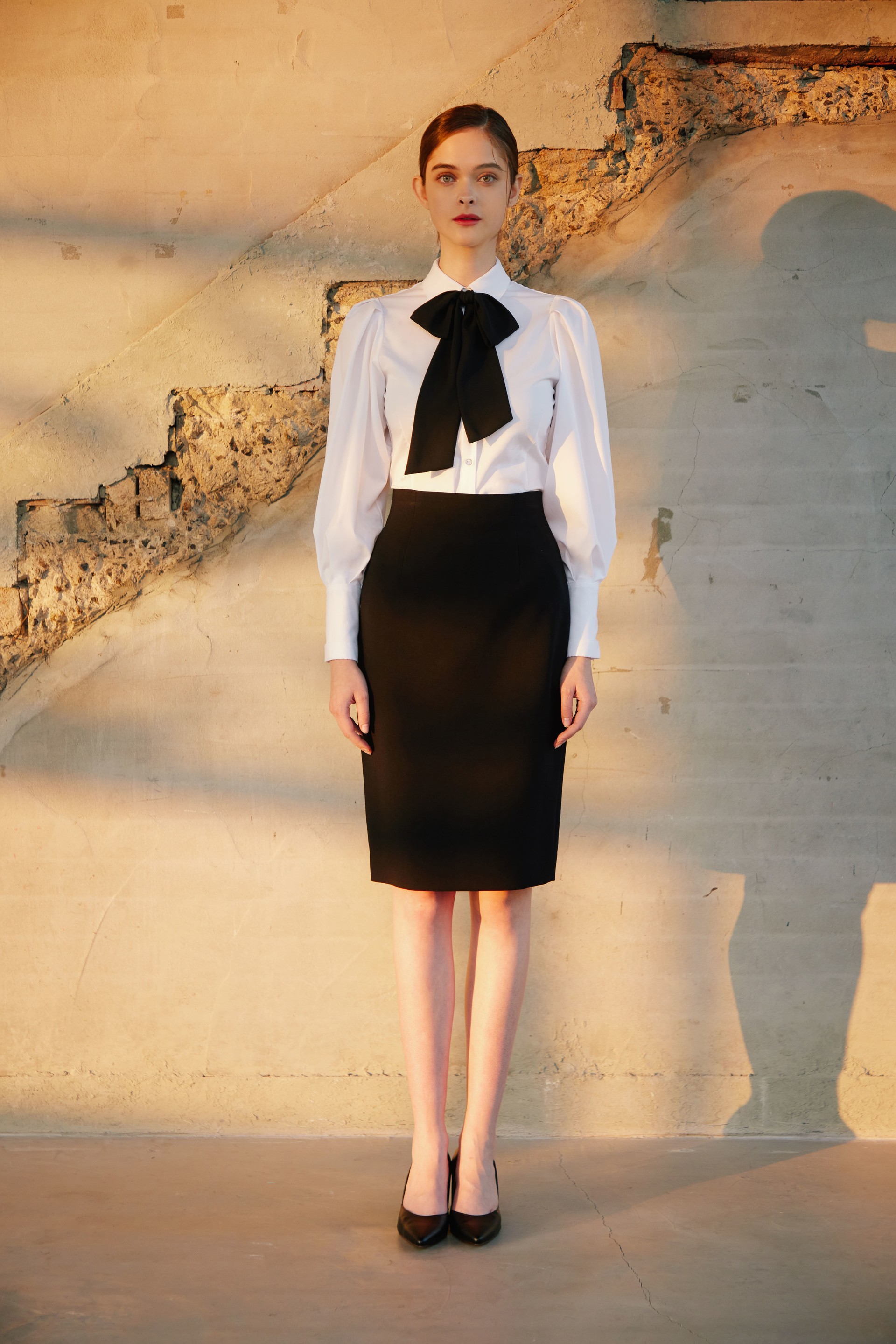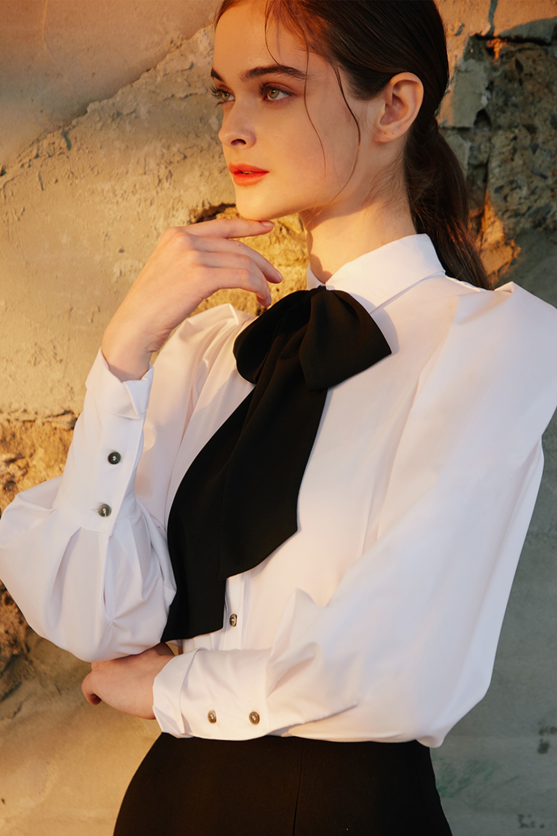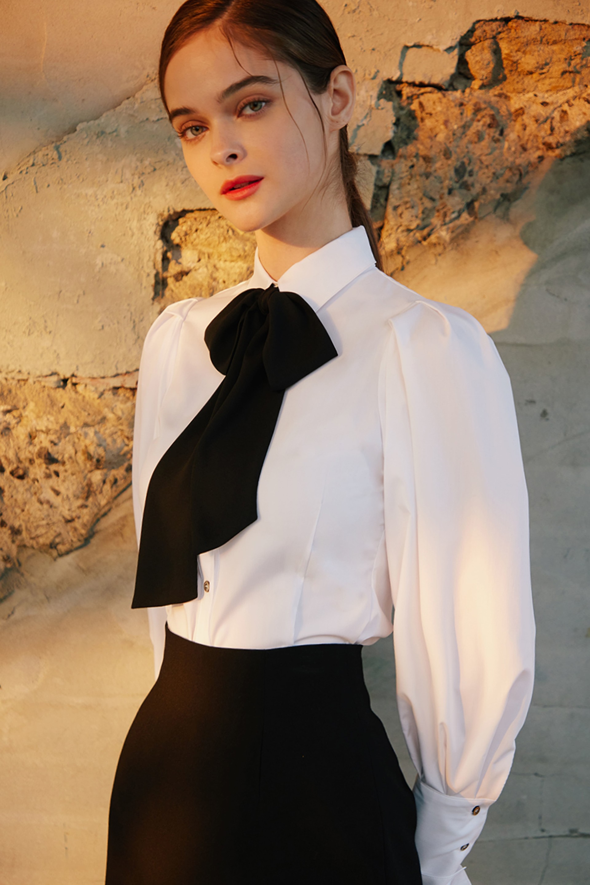 페전트 화이트 블라우스