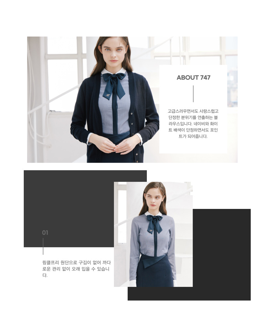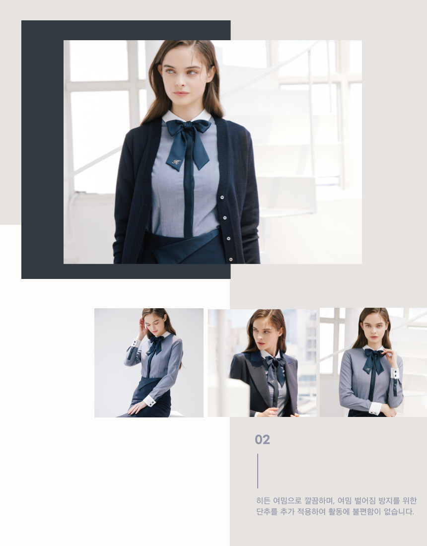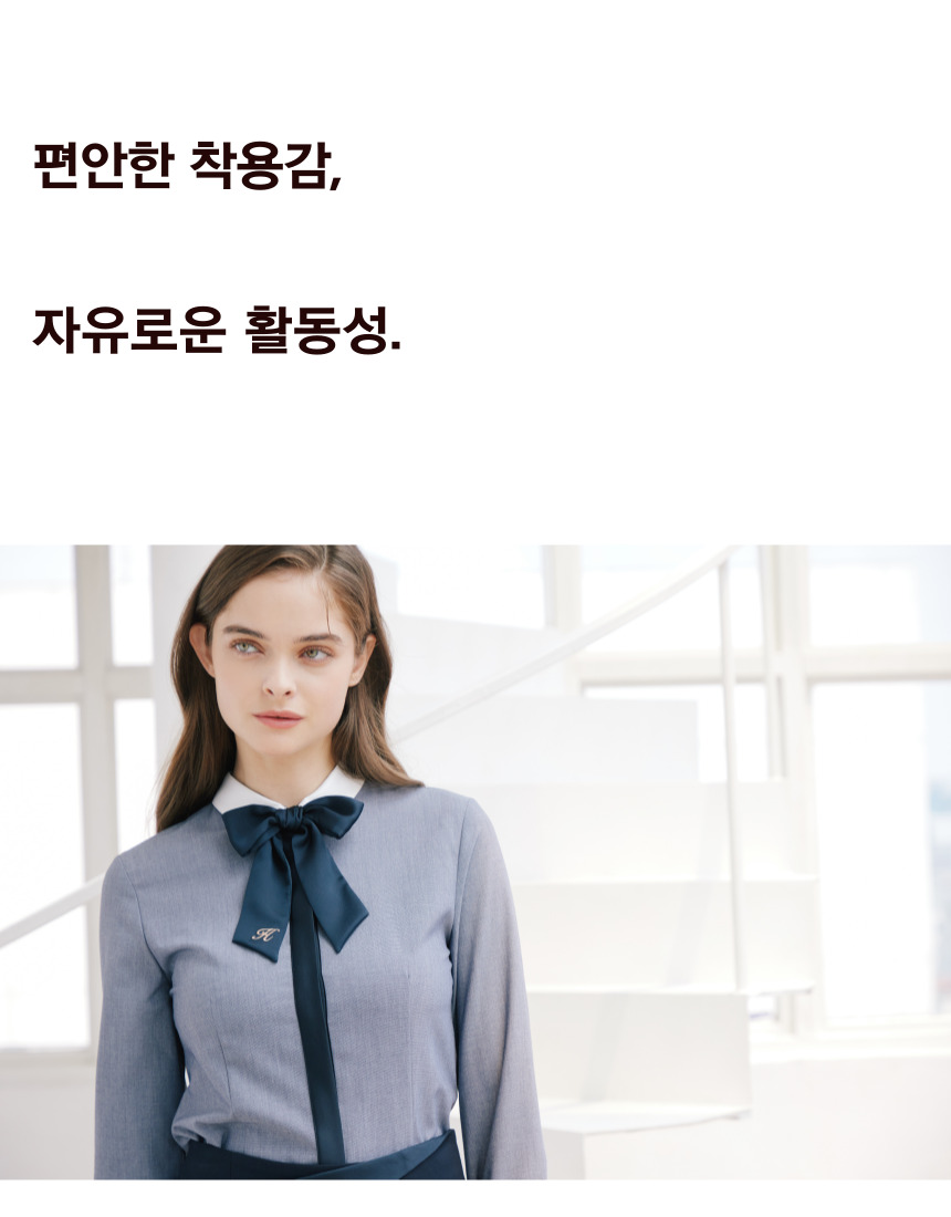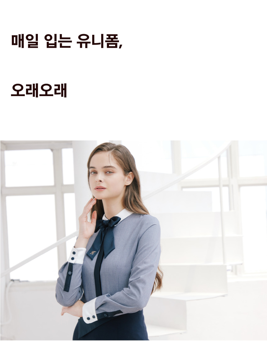 - 일상복, 오피스웨어, 병원, 백화점, 1:1 고객 응대 서비스, 상담직 등과 같은 서비스 업무의 직종과 관련된 복장에 추천드립니다.