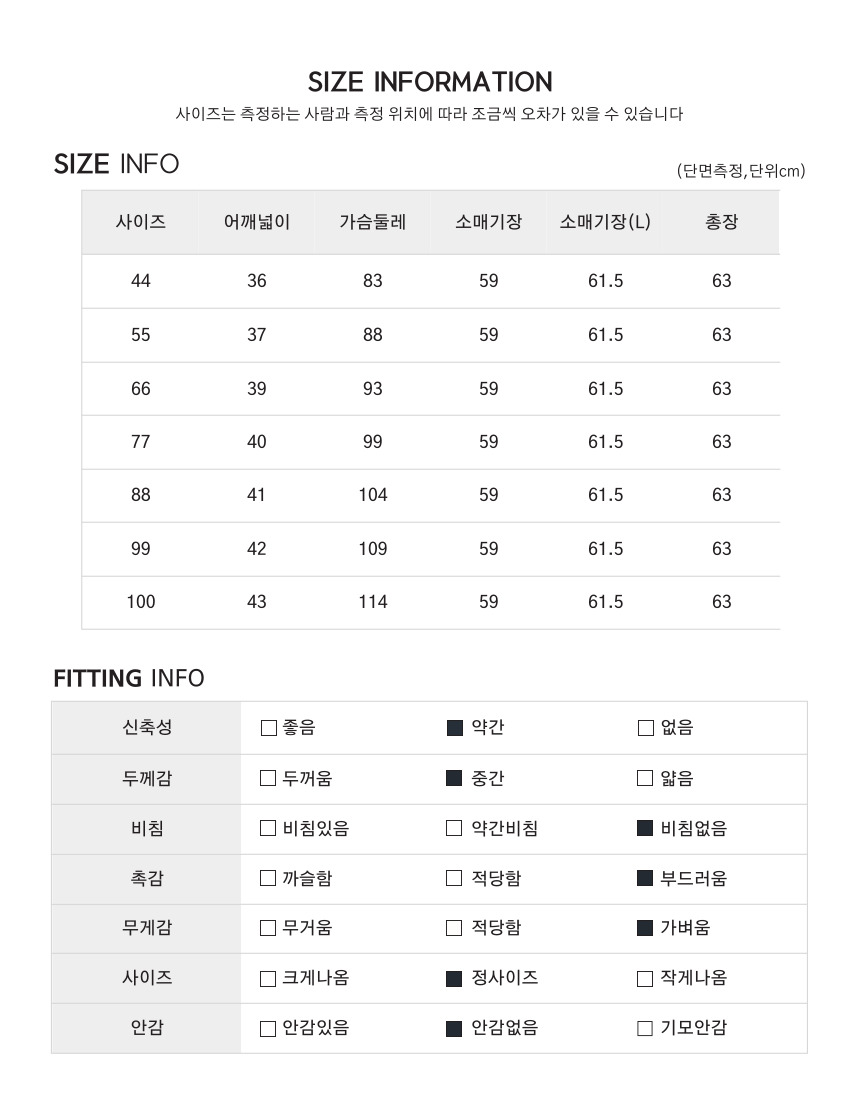 주문 시점에 따라 원단 색상 차이가 발생할 수 있습니다.