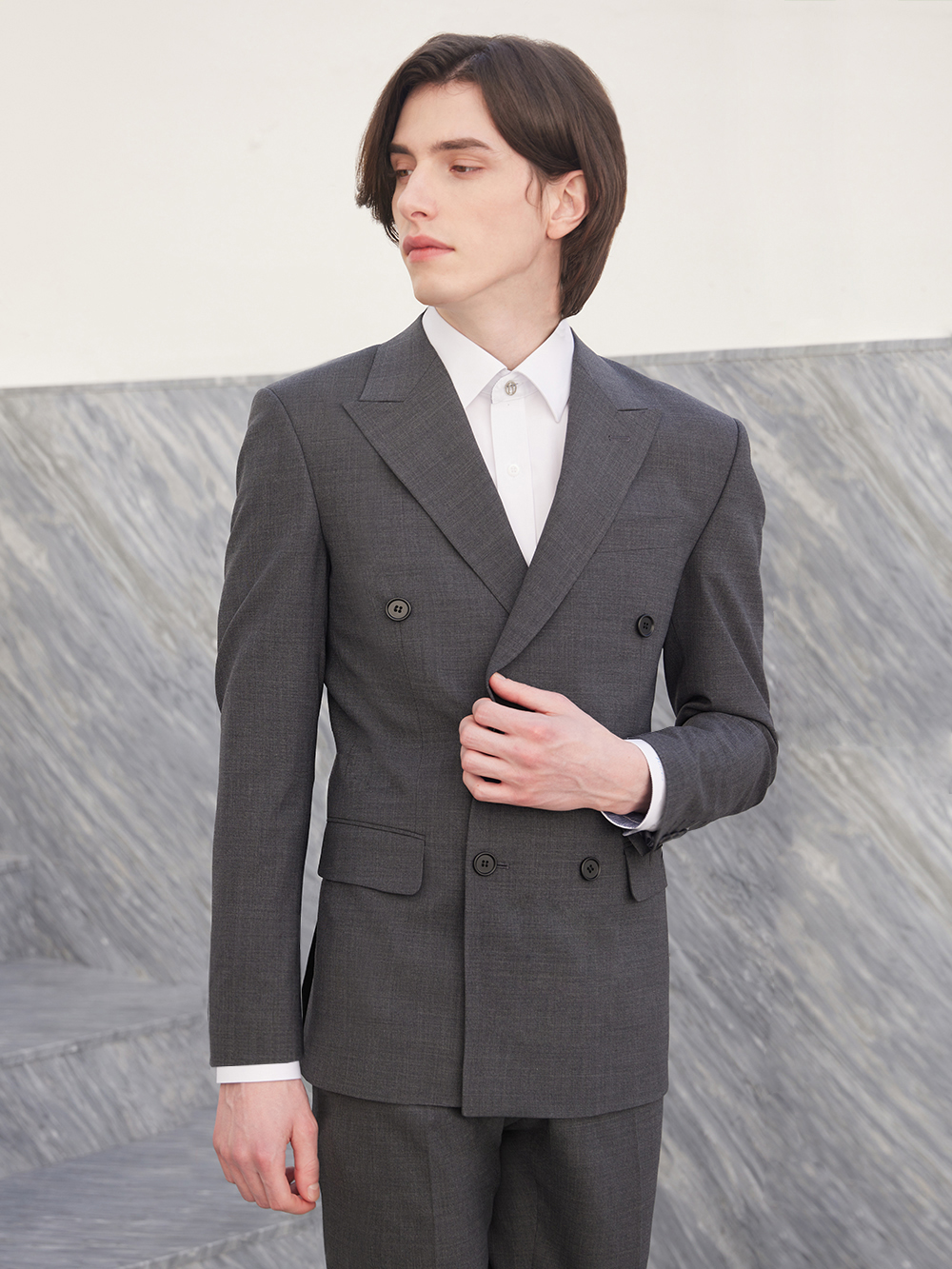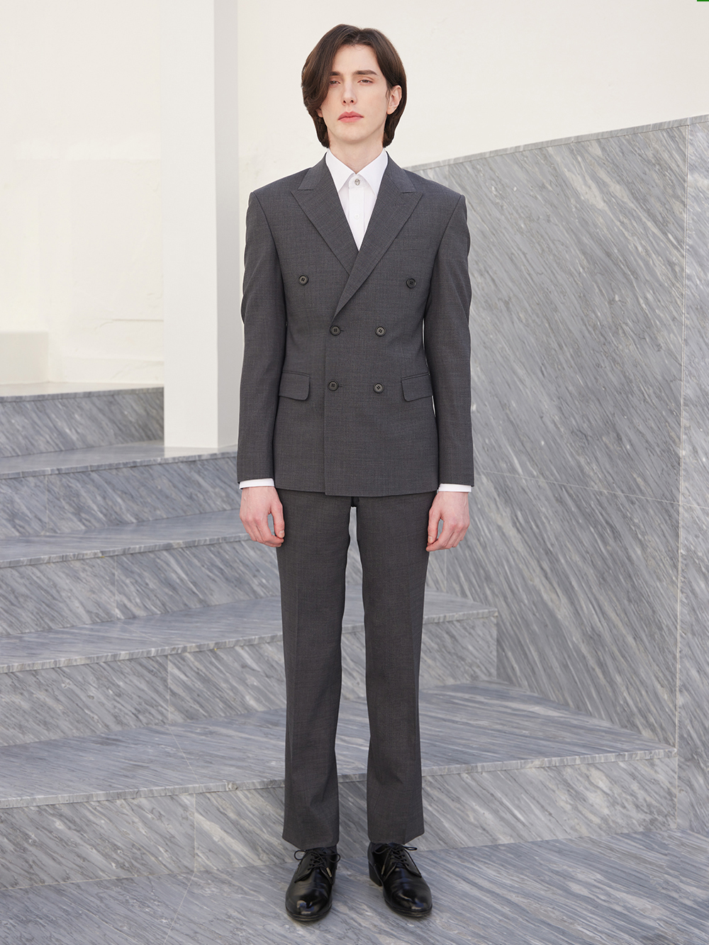 옴므 더블 브레스티드 그레이 쿨울 자켓