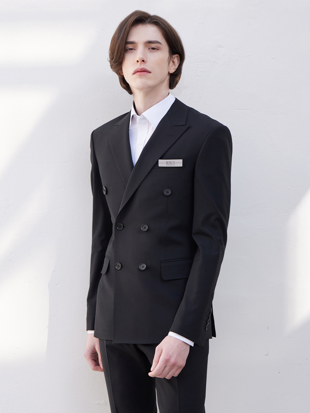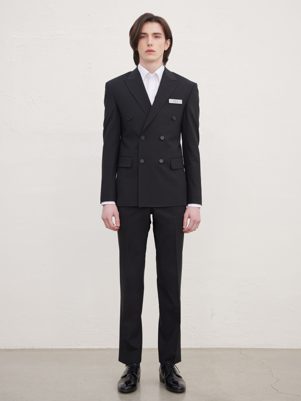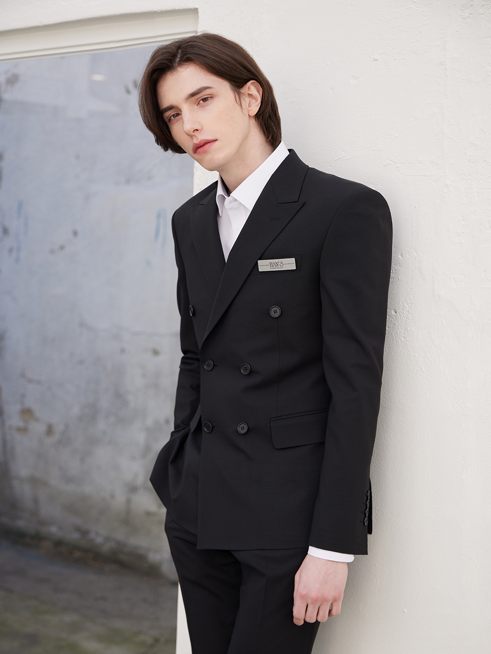 - 클래식한 디자인의 더블 자켓으로, 우아하고 멋스러운 남성의 이미지를 보여줍니다.