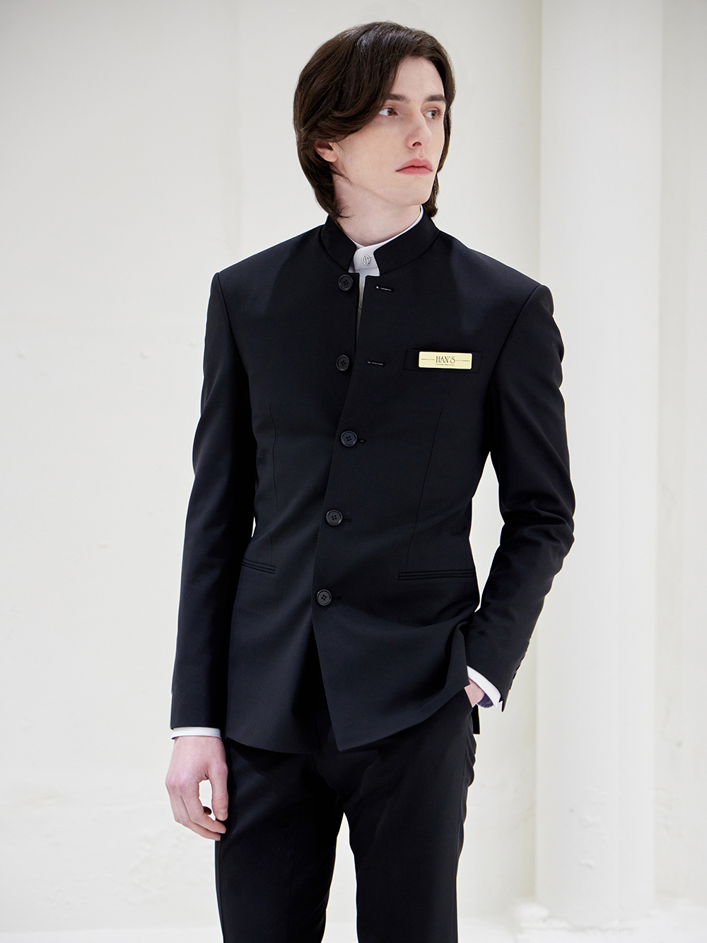 - 깔끔한 차이나 카라의 자켓이며, 뒷면에는 고급스러운 더블 벤트를 사용하여 활동성이 좋습니다.
