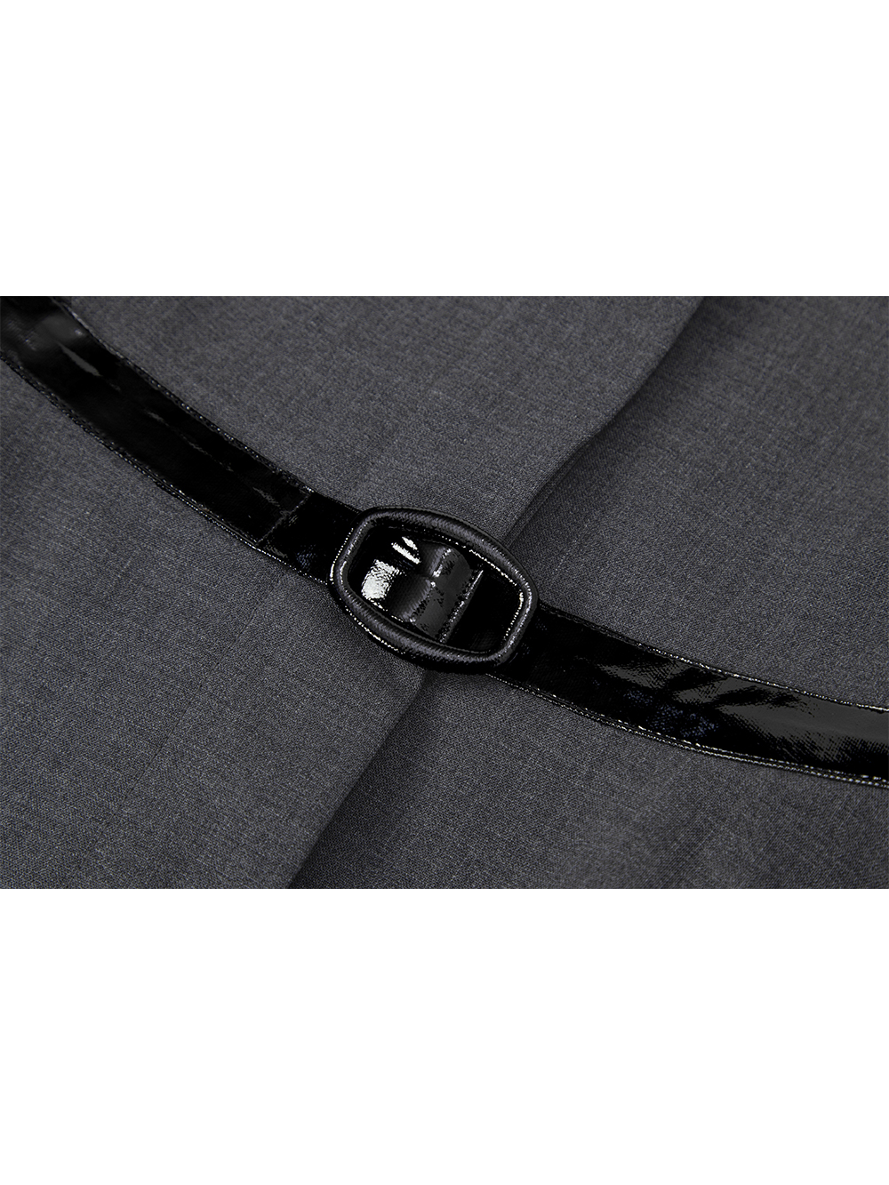 - 애나멜 원단의 배색으로 버클 장식과 함께 허리 라인을 잡아주는 디자인입니다.