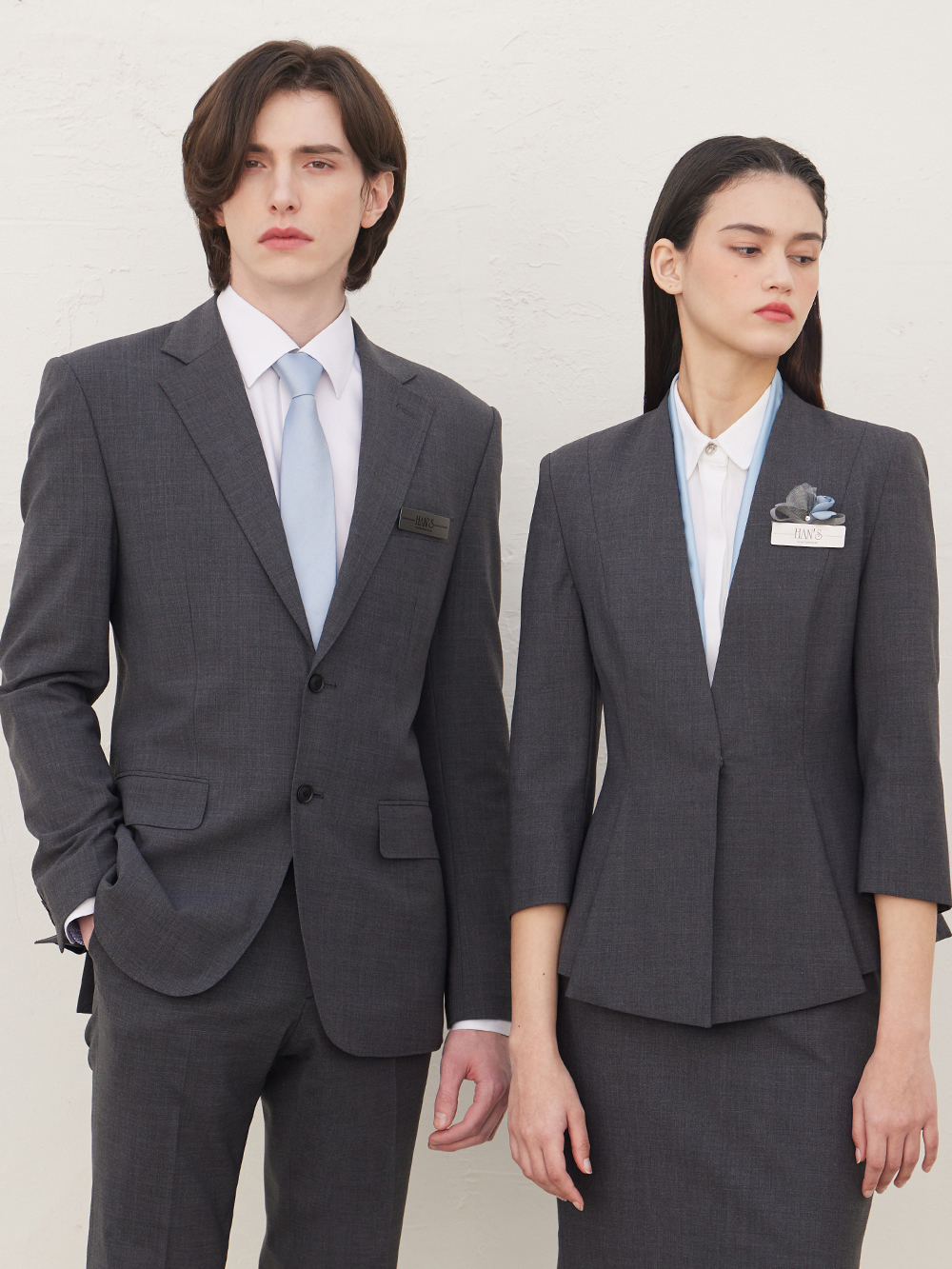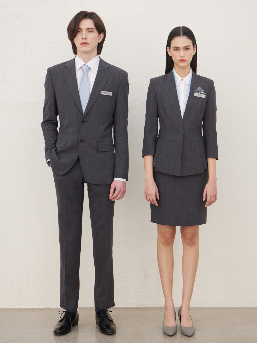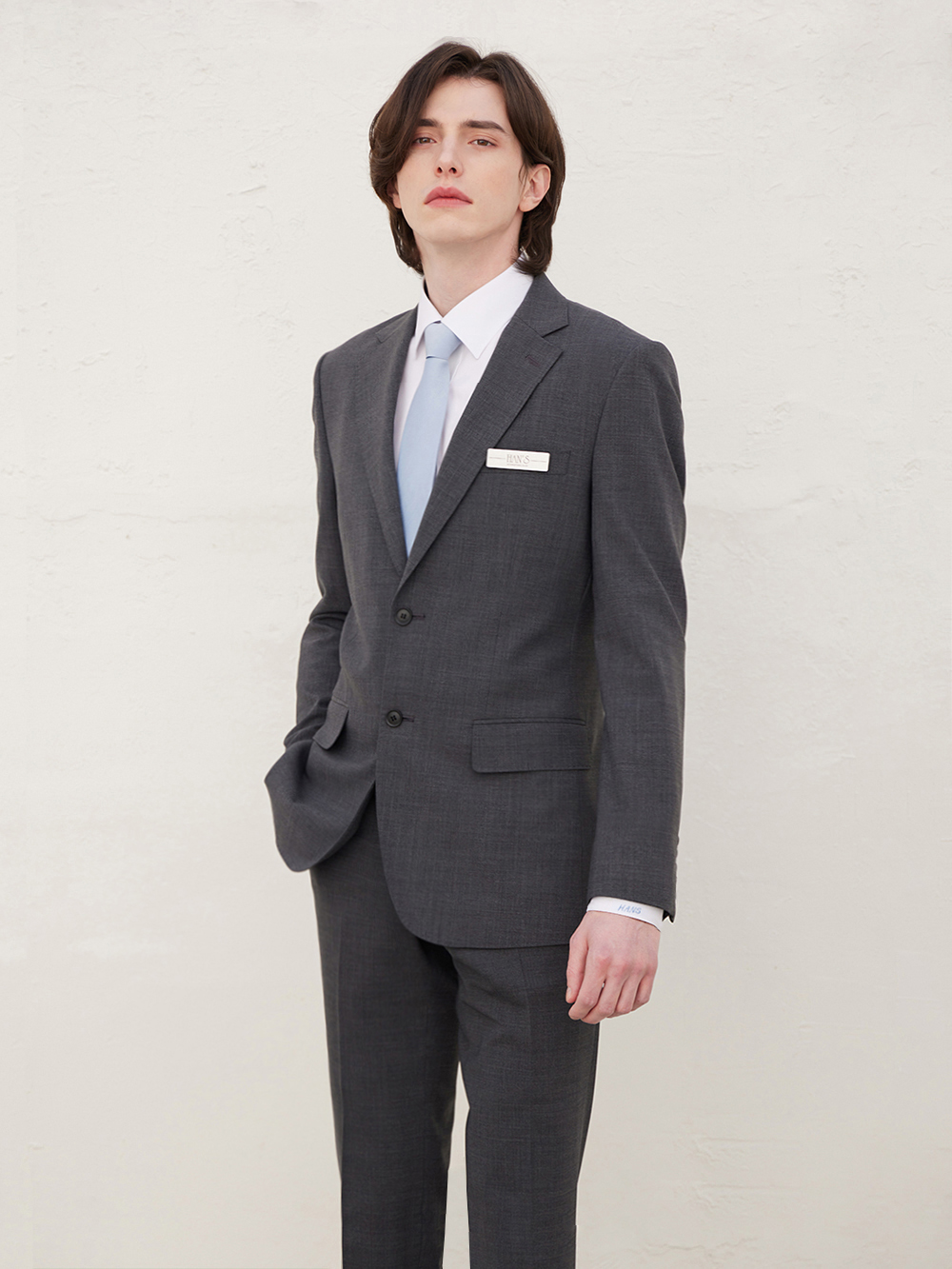 - 깔끔한 투버튼 노카라 자켓이며 베이직한 디자인으로, 예복부터 출퇴근복까지 활용도가 높은 디자인입니다.