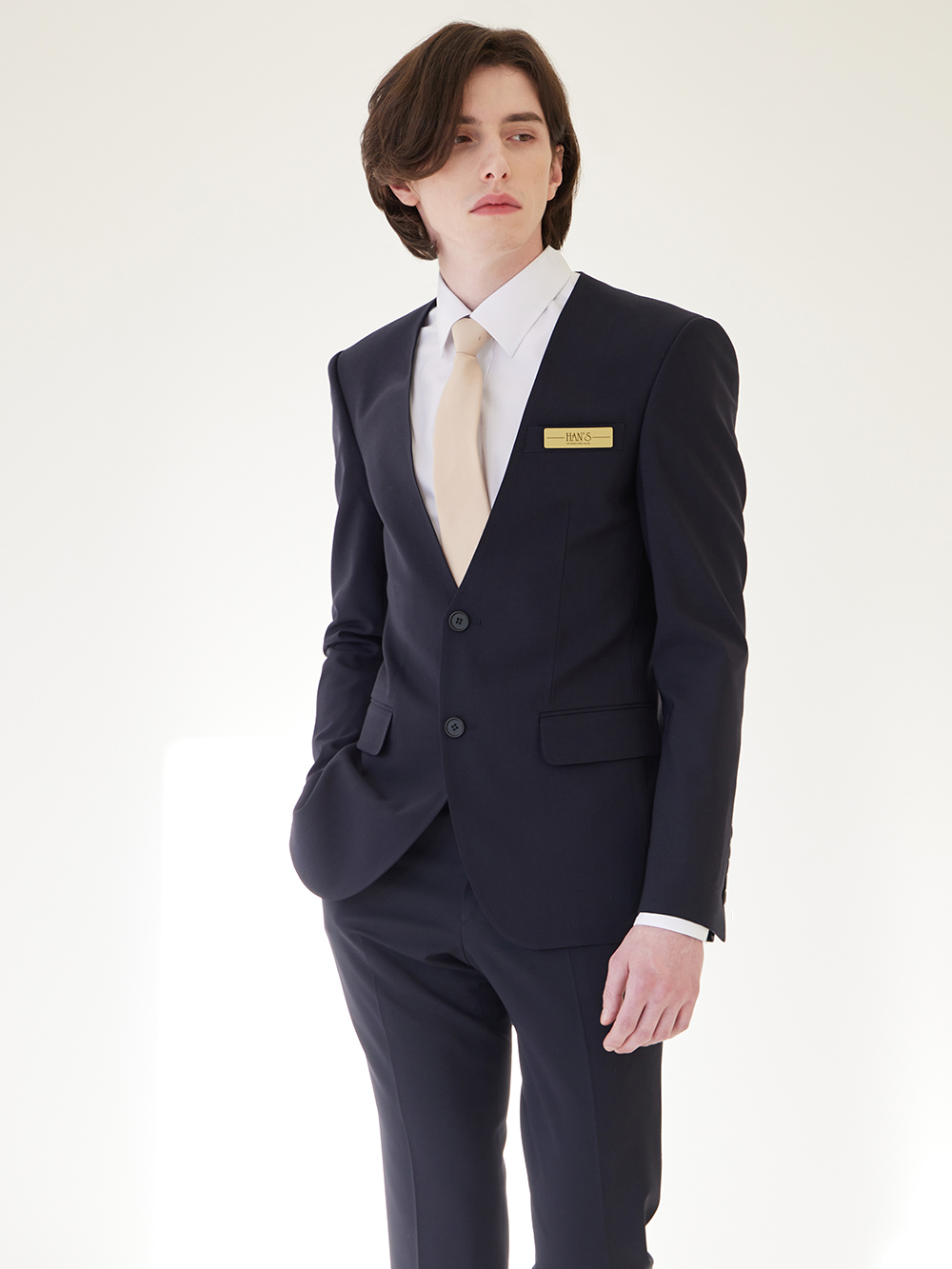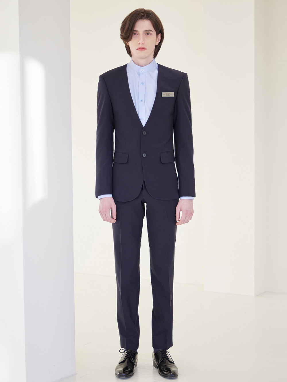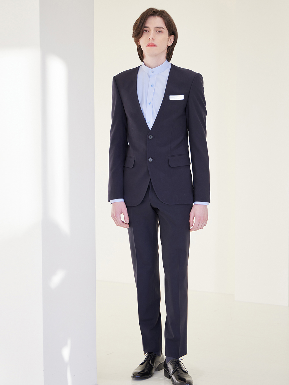 - 깔끔한 투버튼 노카라 자켓이며 베이직한 디자인으로, 예복부터 출퇴근복까지 활용도가 높은 디자인입니다.