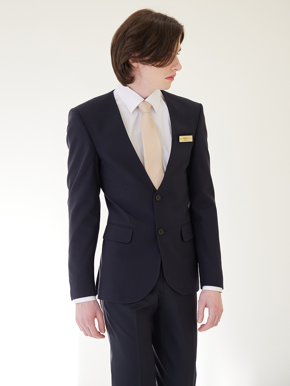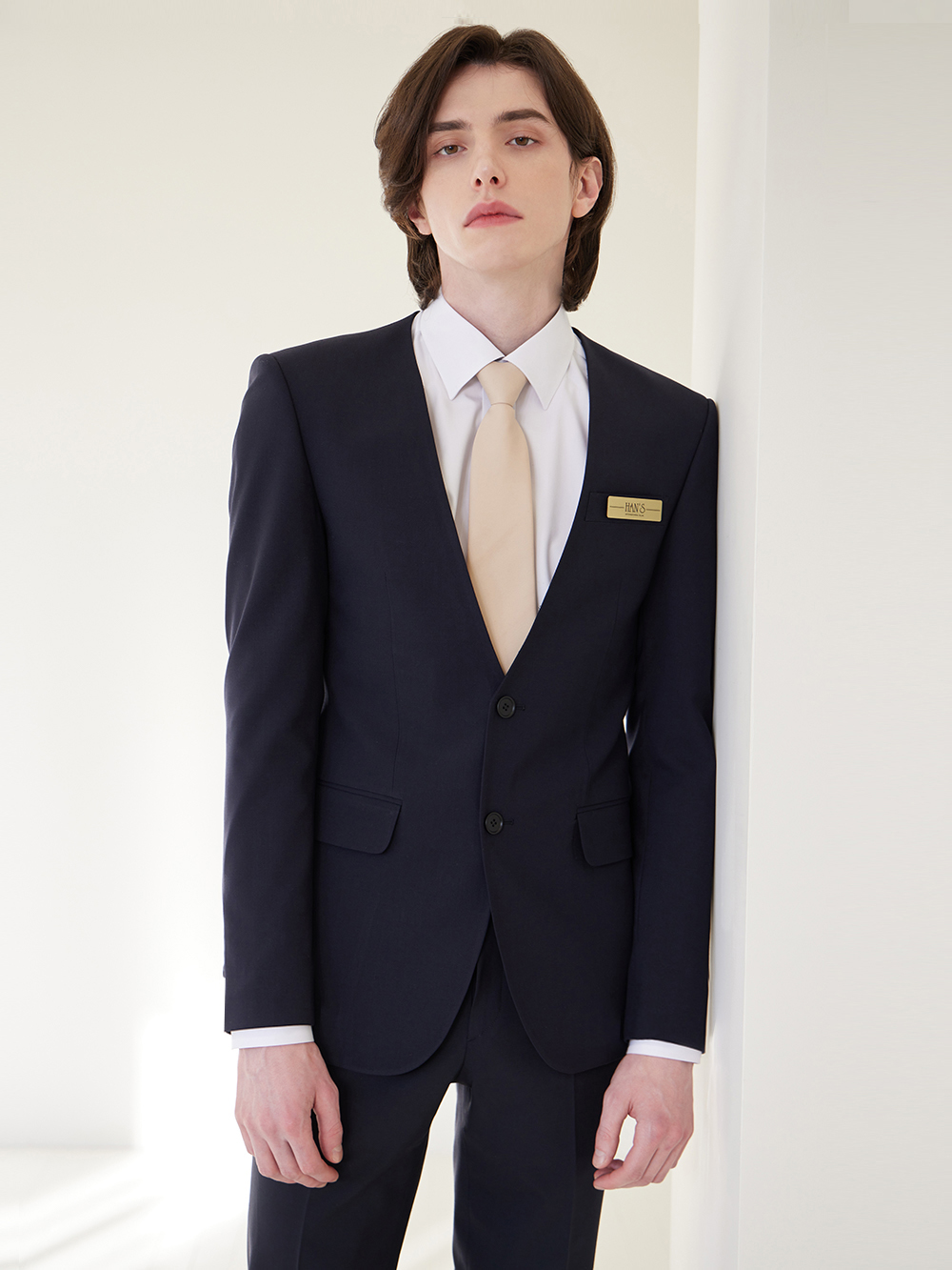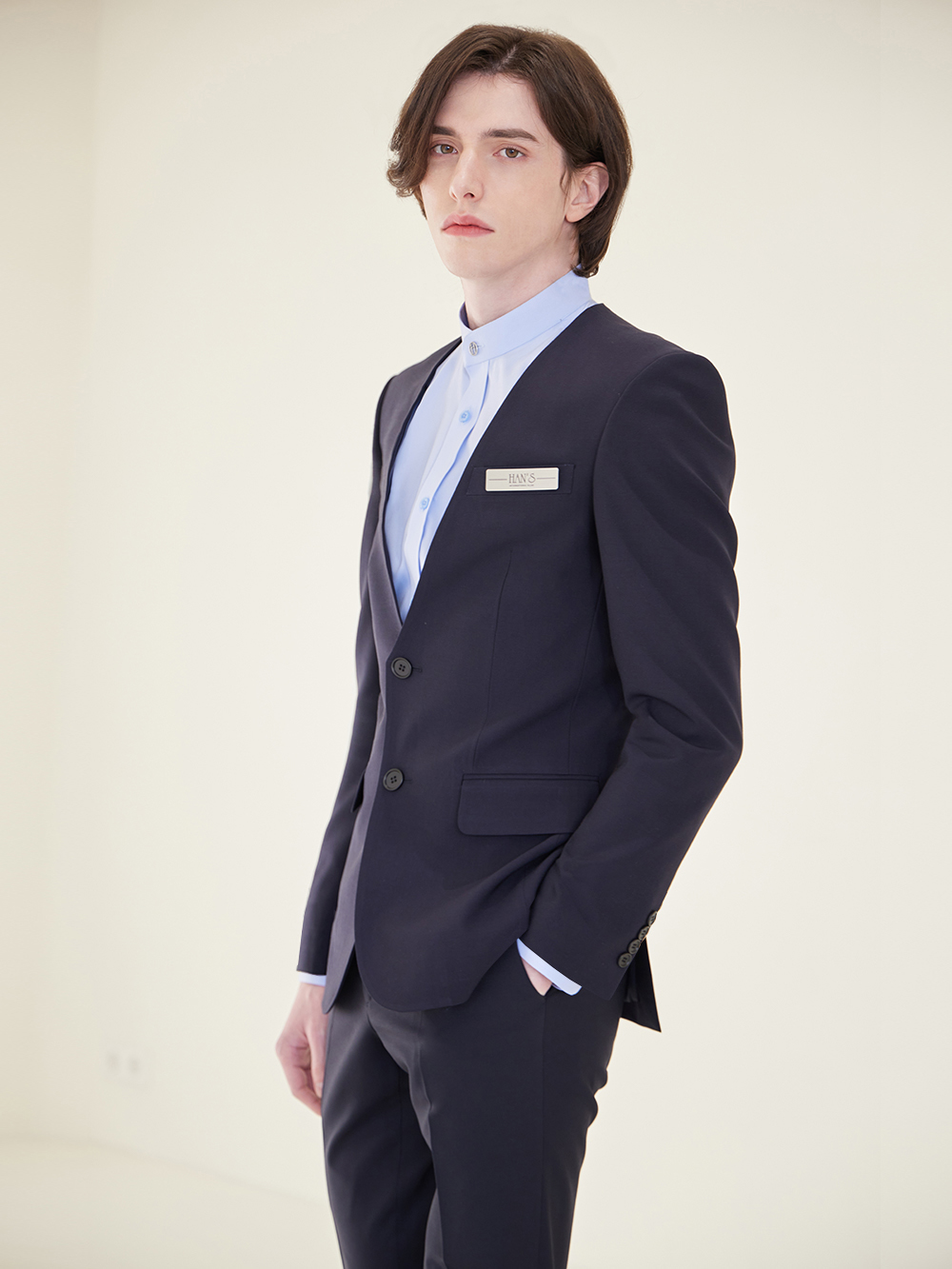 - 깔끔한 투버튼 노카라 자켓이며 베이직한 디자인으로, 예복부터 출퇴근복까지 활용도가 높은 디자인입니다.